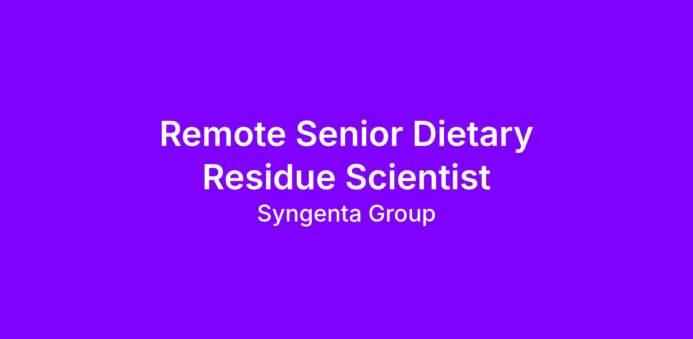Through leading innovations, we help farmers around the world meet the challenge of feeding a growing population and taking care of our planet. To support this challenge, Syngenta’s Product Safety Team is seeking a Senior Dietary Residue Scientist.
