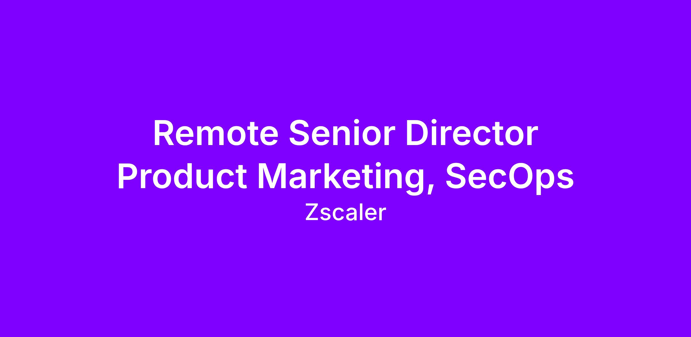 We are looking for a Senior Director Product Marketing, SecOps to join our Marketing team. This is a remote-eligible role reporting to the SVP, Product Marketing.