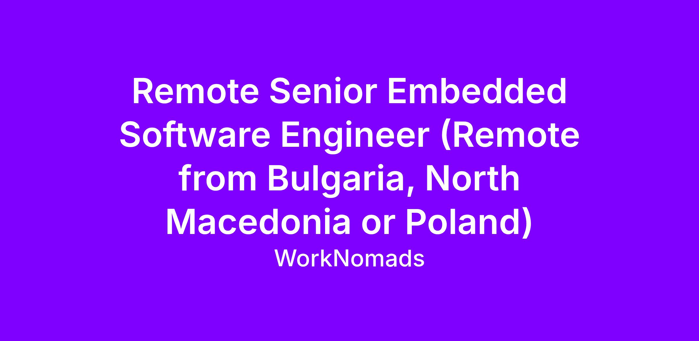 Fully remote work within Bulgaria, North Macedonia, or Poland