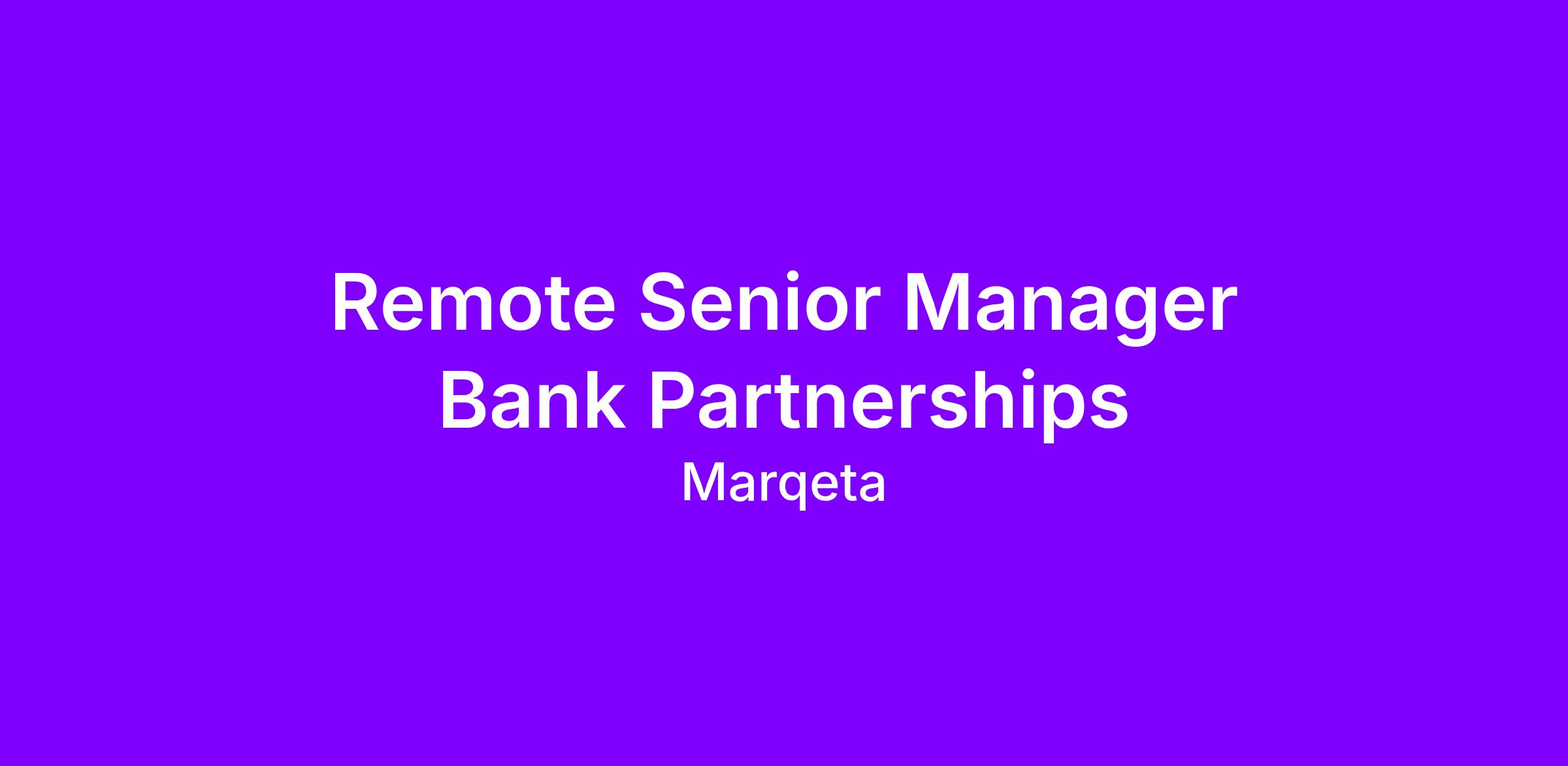 As Marqeta’s Senior Manager, Bank Partnerships, you will manage and enhance relationships with existing issuing bank partners and develop new relationships.