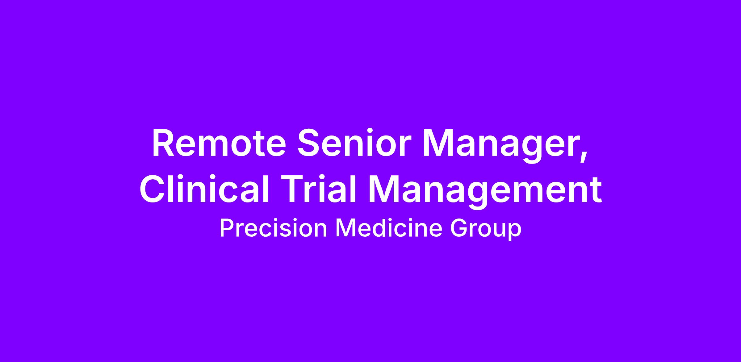 Precision for Medicine is growing! We are looking for an experienced Senior Manager, Clinical Trial Management to cover the line management of our Clinical Trial Managers. The position can be covered fully remotely from Spain.
