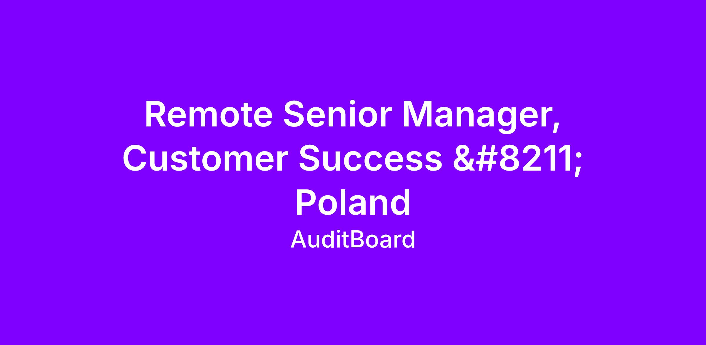 We are looking for a people-first, execution-oriented Senior Manager, Customer Success (Scale) to lead our Poland-based Scale CSM team. As our first leadership hire in Poland, you will serve as the foundational pillar of our regional presence. Beyond managing the Scale team, you will act as the local ‘anchor’ for Optro’s culture, playing a strategic role in establishing our brand and operational footprint within the Polish market.”