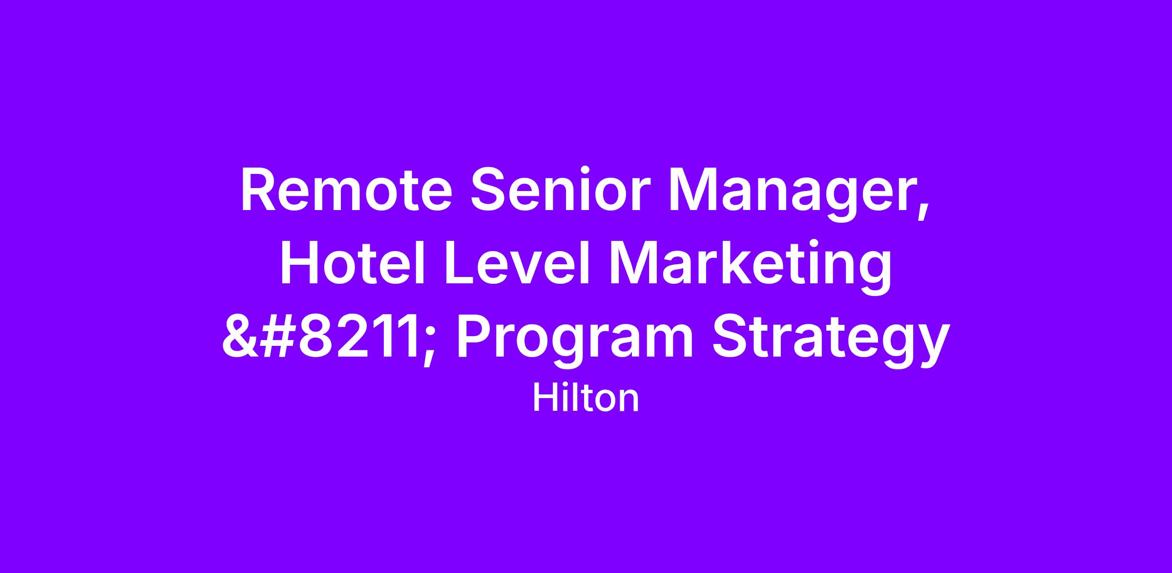 Hilton offers its eligible team members a comprehensive benefits package to support their mental and physical well-being, so they can Thrive personally and professionally. The pay range for this role is $90,000 – $130,000 and is determined based on applicable and specialized experience and location. Subject to plan terms and conditions, you will be eligible to participate in the Hilton Annual Incentive (Bonus) Plan, consistent with other team members at the same level and/or position within the Company. #LI-REMOTE