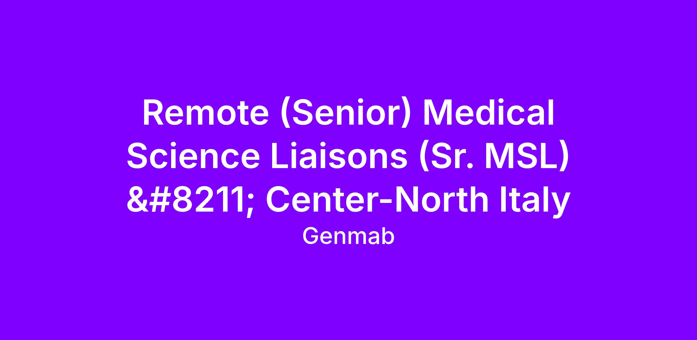 Remote (Senior) Medical Science Liaisons (Sr. MSL) – Center-North Italy