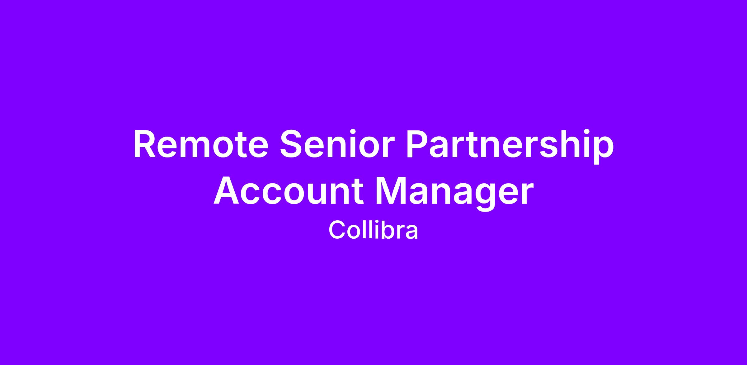 Senior Partner Account Managers at Collibra are responsible for