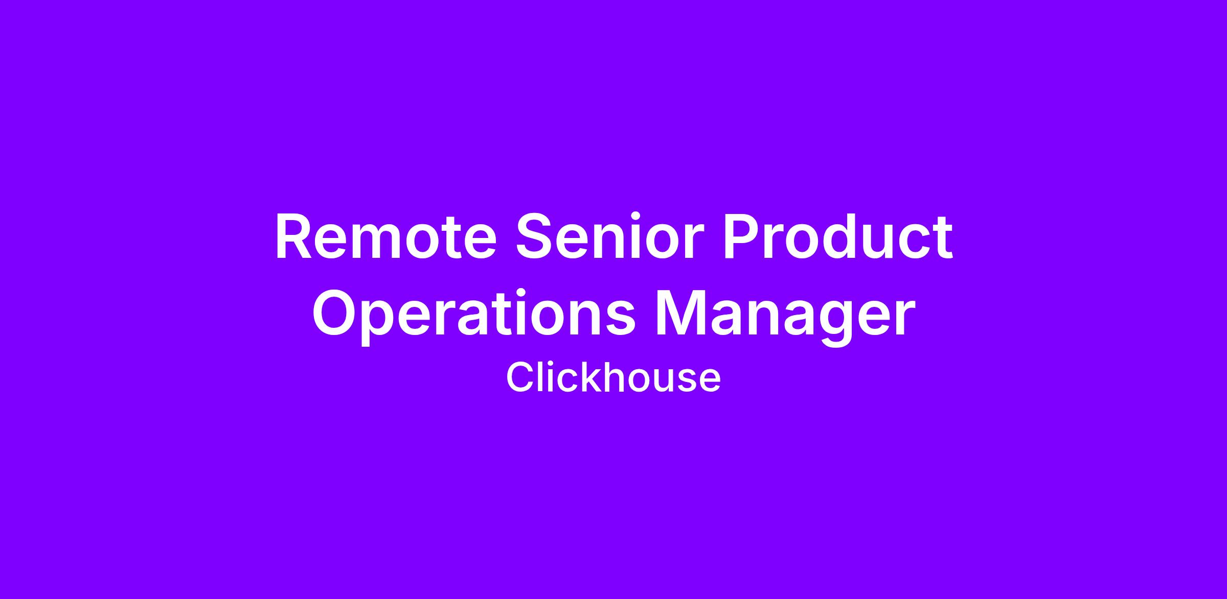 We’re looking for a Senior Product Operations Manager to bring structure, tooling, and operational clarity to ClickHouse’s Product Management organization. This is a greenfield role — you’ll be the first person dedicated to product ops — which means you’ll have the opportunity to build workflows and systems from scratch rather than maintain someone else’s.