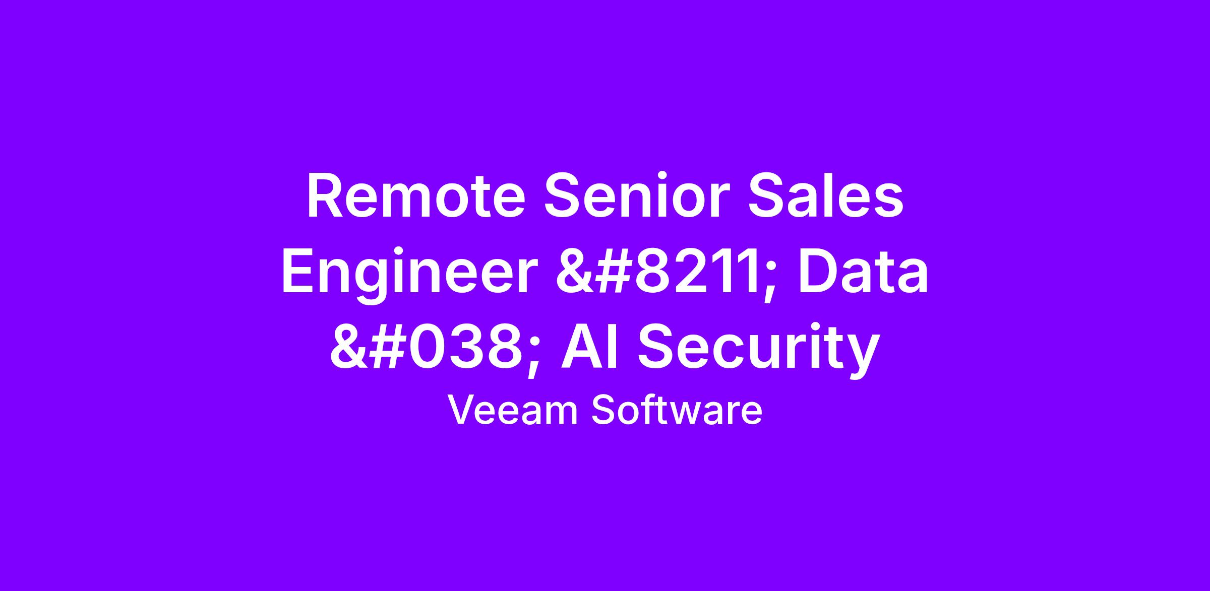 Veeam, following its acquisition of Securiti AI – the leader in AI-powered data security posture management (DSPM) – is seeking a Senior Sales Engineer to drive technical leadership in our sales team, focusing on the Securiti AI portfolio.