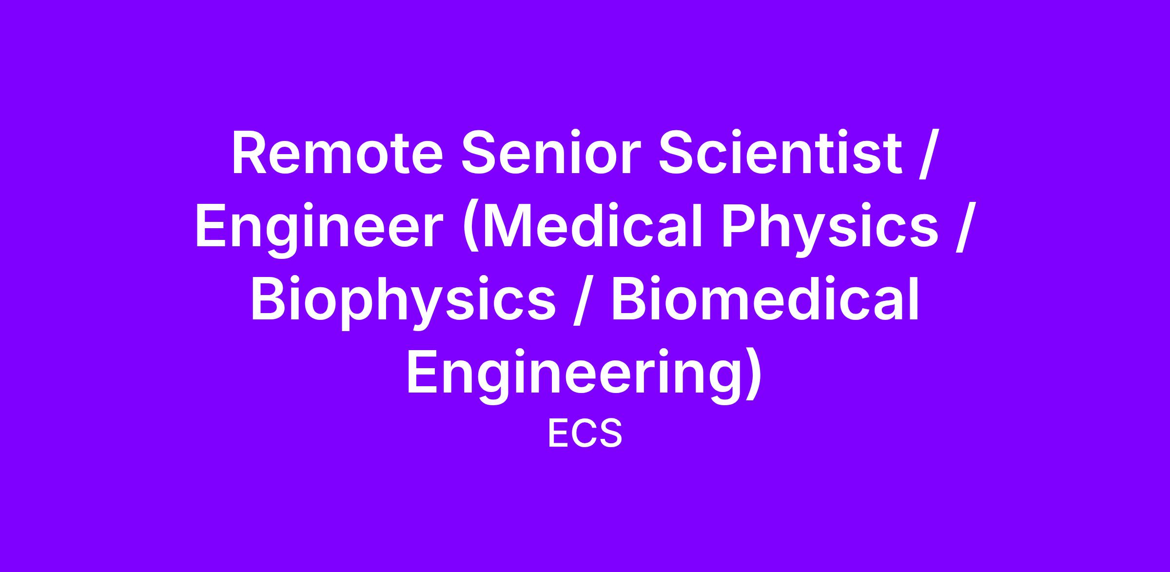 ECS is seeking a Senior Scientist / Engineer (Medical Physics / Biophysics / Biomedical Engineering) to work remotely.