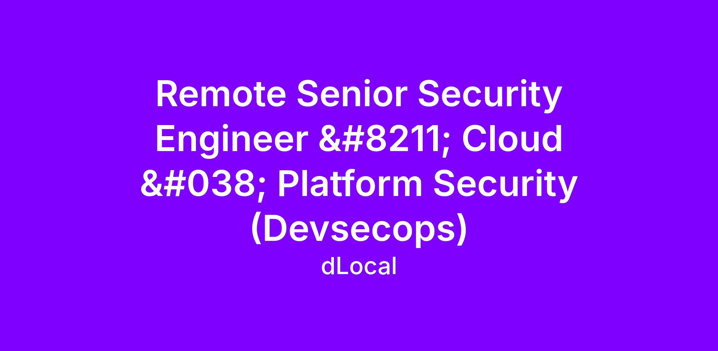 path for all our engineers. You’ll partner closely with dLocal’s Cloud Platform/SRE teams