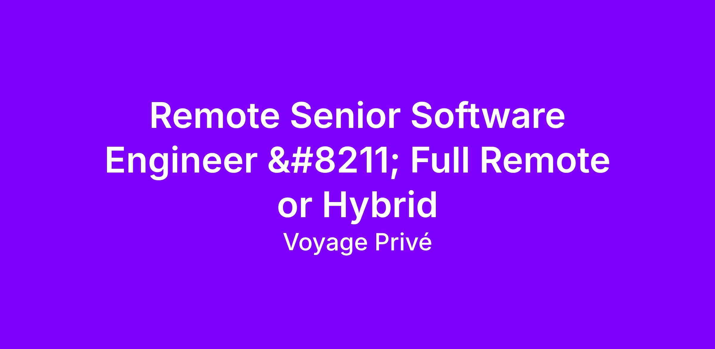Remote Senior Software Engineer – Full Remote or Hybrid