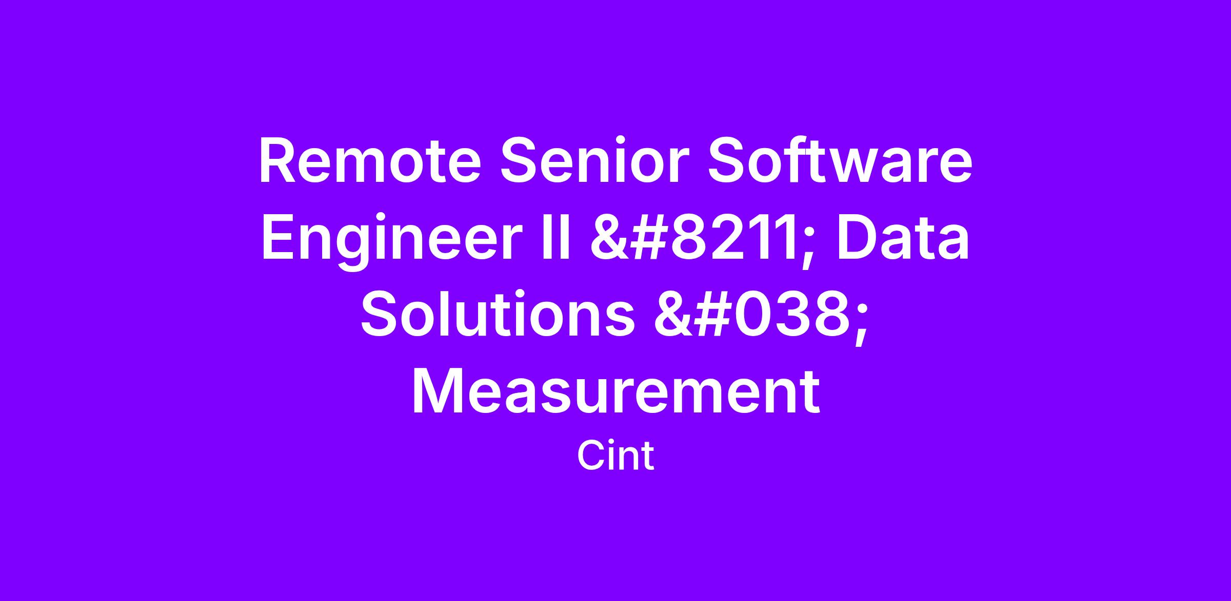 The Cint Technology team is looking for a Senior Software Engineer II to join our international Measurement team. This position is for a software engineer who likes challenges. Our business has been doubling in the last few years, and so our systems need to scale to accommodate this growth.