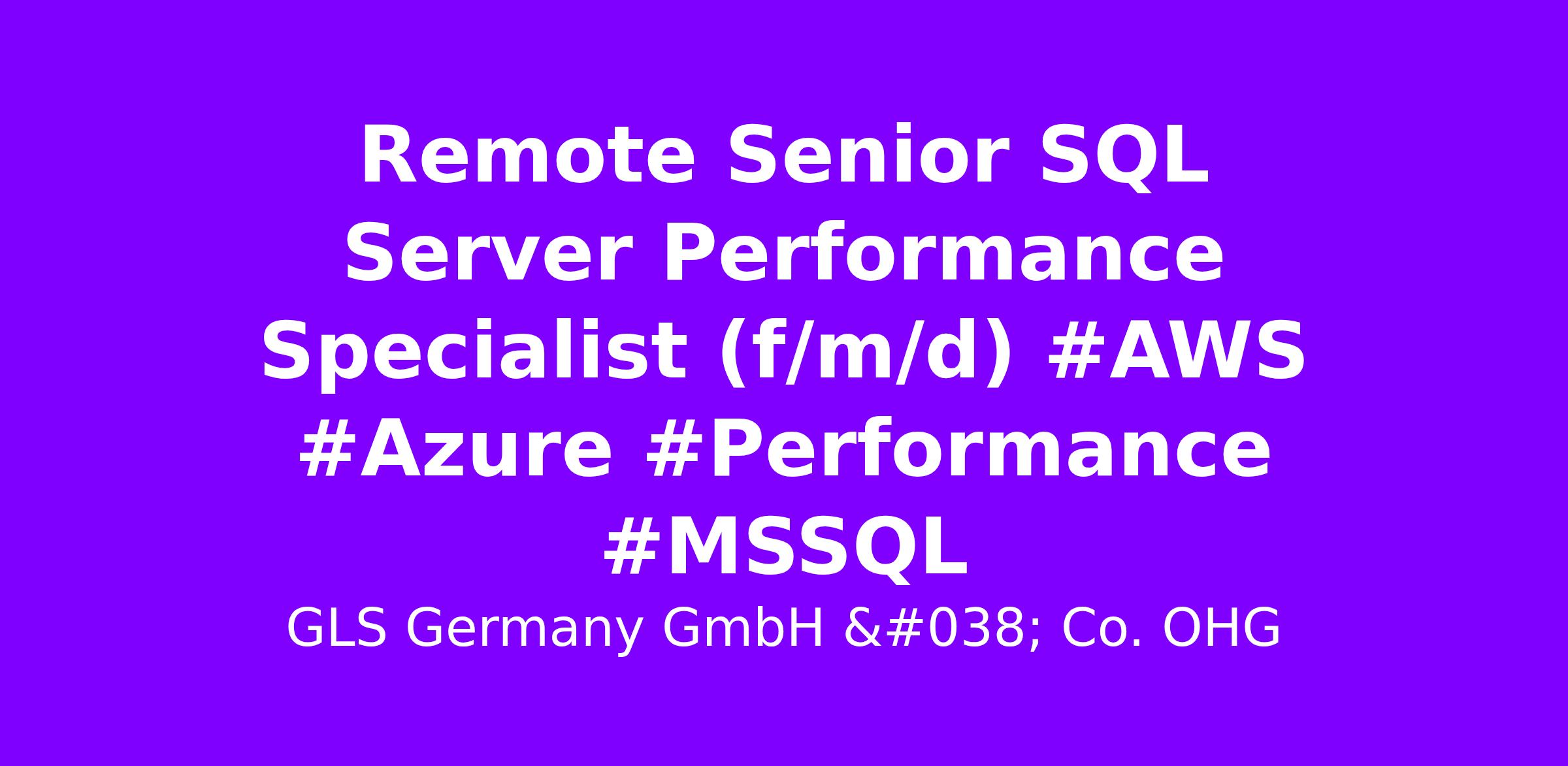 Senior SQL Server Performance Specialist (f/m/d) #AWS #Azure #Performance #MSSQL