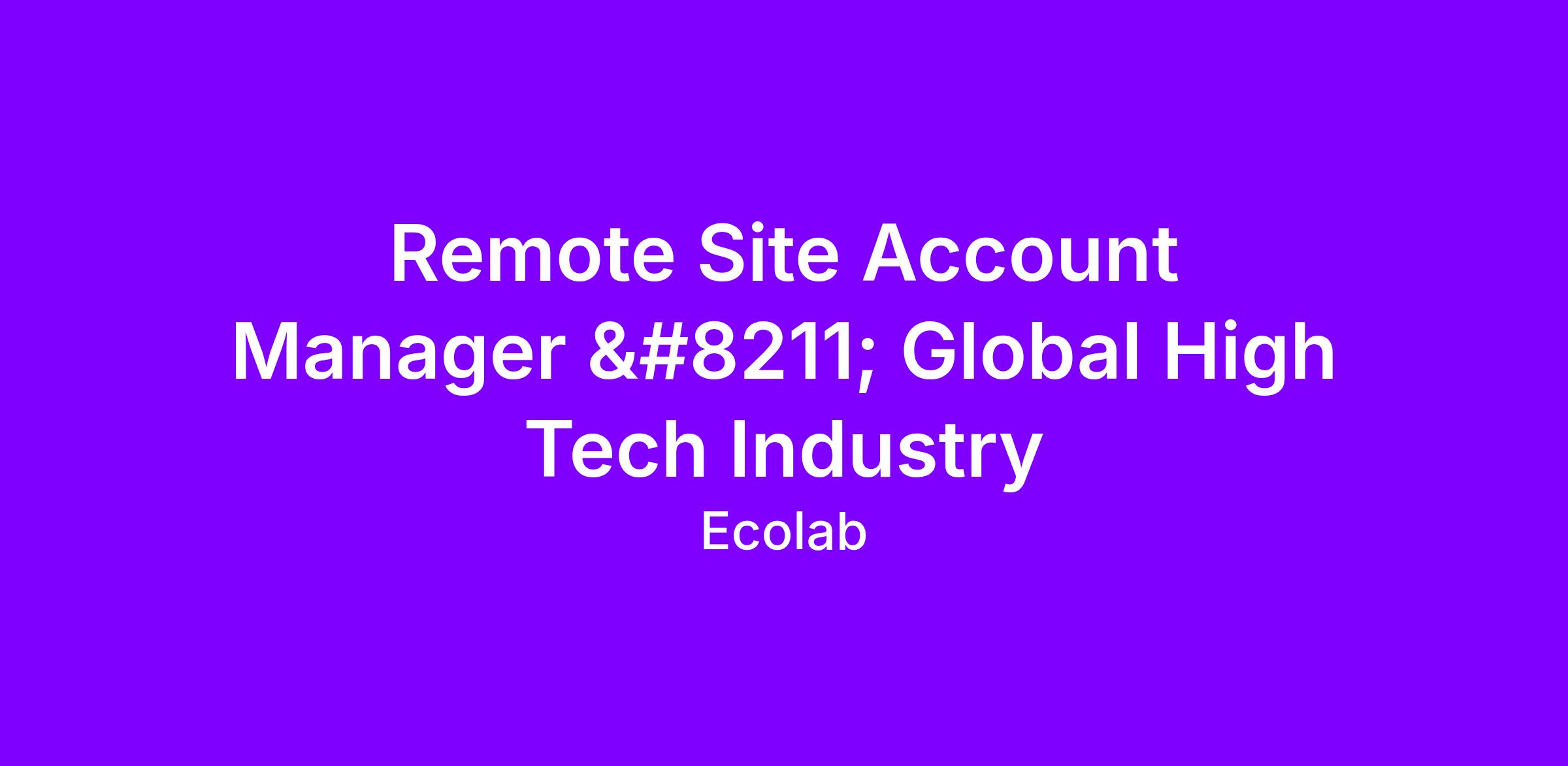 As a Site Account Manager, you will be fully dedicated to a single Global High-Tech customer site, acting as the primary interface between the client and Ecolab/Nalco Water operations.