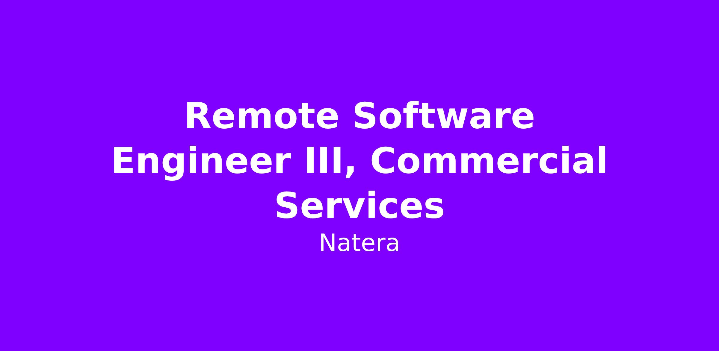 POSITION SUMMARY: Are you ready to make a real impact on people’s lives and be a part of a rapidly-growing team? Natera is seeking a Software Engineer III to help design, develop, and maintain our Commercial Services, a critical backend microservice that powers our business operations. As a member of our engineering team, you will play a key role in processing and managing commercial services, ultimately helping to positively impact patient outcomes. Join us in our mission to change the way disease is managed, and be a part of a team of dedicated professionals who are passionate about making a difference.