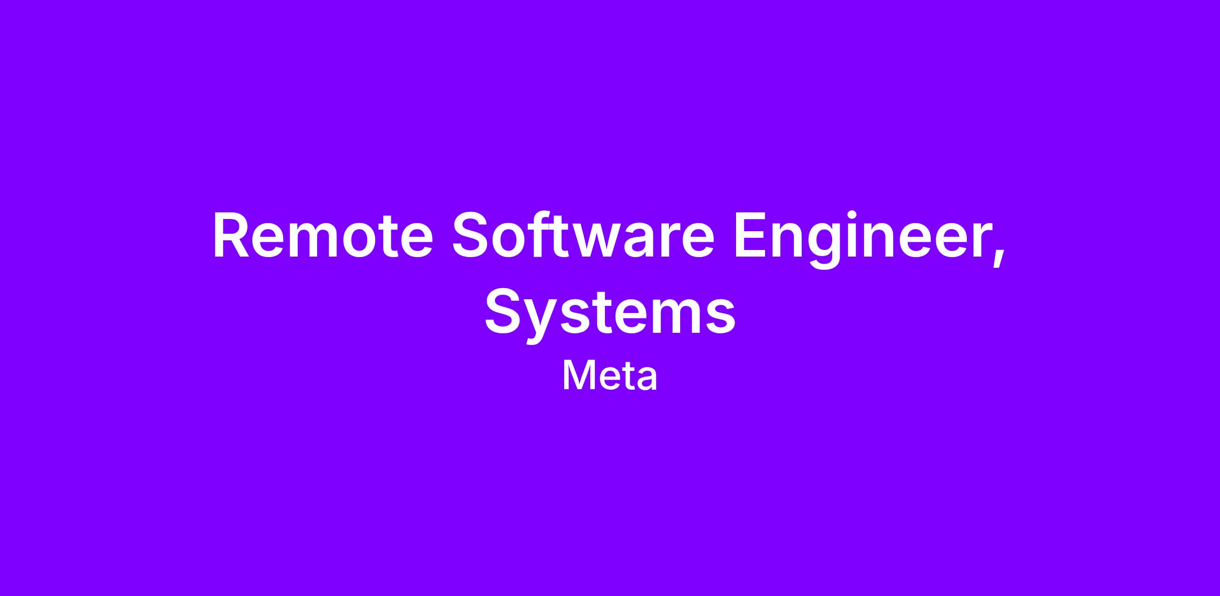 Meta Platforms, Inc. (Meta), formerly known as Facebook Inc., builds technologies that help people connect, find communities, and grow businesses. When Facebook launched in 2004, it changed the way people connect. Apps and services like Messenger, Instagram, and WhatsApp further empowered billions around the world. Now, Meta is moving beyond 2D screens toward immersive experiences like augmented and virtual reality to help build the next evolution in social technology. To apply, click “Apply to Job” online on this web page.ResponsibilitiesResearch, design, develop, build and test operating systems-level software, compilers, and network distribution software for large distributed components that run applications.* Build new features and improve existing products.* Work on problems of moderate scope.* Push code, drive the development of the systems behind our products, create web applications that reach billions of people, build high volume servers, and be a part of a team to connect people around the globe.* Develop a strong understanding of relevant product area, codebase, and/or systems.* Demonstrate proficiency in data analysis, programming and software engineering.* Produce high quality code with good test coverage, using modern abstractions and frameworks.* Receive general instructions on routine work and detailed instructions on new projects or assignments, work independently, use available resources to get unblocked, and complete tasks on-schedule by exercising strong judgment and problem solving skills.* Master internal development standards from developing to releasing code in order to take on tasks and projects with increasing levels of complexity.* Actively seek and give feedback in alignment with company Performance Philosophy.* Telecommuting from anywhere in the U.S. allowed.QualificationsRequires a Bachelor’s degree in Computer Science, Computer Software, Computer Engineering, Applied Sciences, Mathematics, Physics, or related field* Requires completion of a university-level course, research project, internship, or thesis in the following:* Coding in one of the following industry-standard languages: C, C++, C#, Python, Java, or Javascript* Python, PHP, or Haskell* Software development tools: Code editors (VIM, Emacs, or VSCode), and revision control systems (Subversion, GIT, or Perforce)* Linux, UNIX, or other *nix-like OS including file manipulation and simple commands* Core web technologies: HTML, CSS, or JavaScript* Algorithms