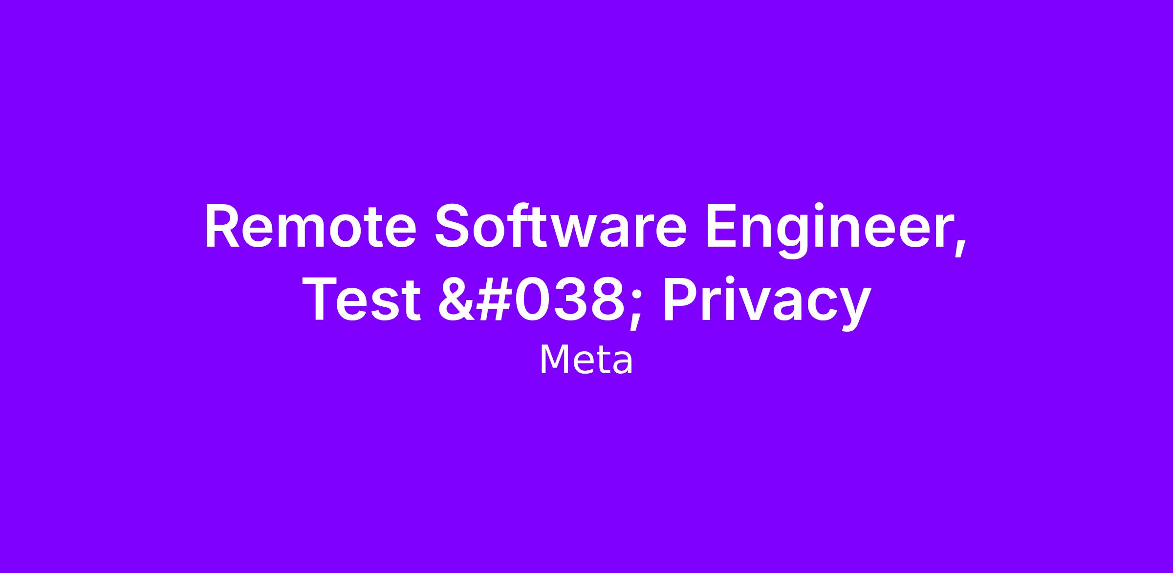 Meta Platforms, Inc. (Meta), formerly known as Facebook Inc., builds technologies that help people connect, find communities, and grow businesses. When Facebook launched in 2004, it changed the way people connect. Apps and services like Messenger, Instagram, and WhatsApp further empowered billions around the world. Now, Meta is moving beyond 2D screens toward immersive experiences like augmented and virtual reality to help build the next evolution in social technology. To apply, click “Apply to Job” online on this web page.ResponsibilitiesDesign and implement automated test frameworks and tools to fill test gaps.* Partner with infrastructure and product engineering teams to ensure automated testing is fully enabled.* Independently drive goals as a project manager – tracking and reporting on status, escalating risks, and finding solutions to obstacles.* Evangelize and drive a culture of quality within Meta’s Tech Audit and within the Centralized Privacy organization by advocating for high quality, quickly escalating issues found by automation or blocking test execution, and helping other teams understand the importance of testing.* Design and implement high-quality automated tests to verify privacy compliance and release readiness.* Telecommuting from anywhere in the U.S. allowed.QualificationsRequires a Master’s degree (or foreign equivalent) in Computer Science, Computer Software, Computer Engineering, Electrical Engineering, Applied Sciences, Mathematics, Physics, or related field and two years of work experience in the job offered or in a computer-related occupation. Requires two years of experience in the following:* Coding in one of the following industry-standard languages: C, C++, Java, or C#* Python, Bash, MATLAB or Haskell* Unit Testing* Integration Testing* Linux, UNIX, or other *nix-like OS as evidenced by file manipulation, advanced commands, and shell scripting* Core web technologies: HTML, CSS, or JavaScript* Performing root-cause analysis of software issues* Developing software tests and test-framework strategies and* Data processing, programming languages, databases, networking, operating systems, computer graphics, or human-computer interaction