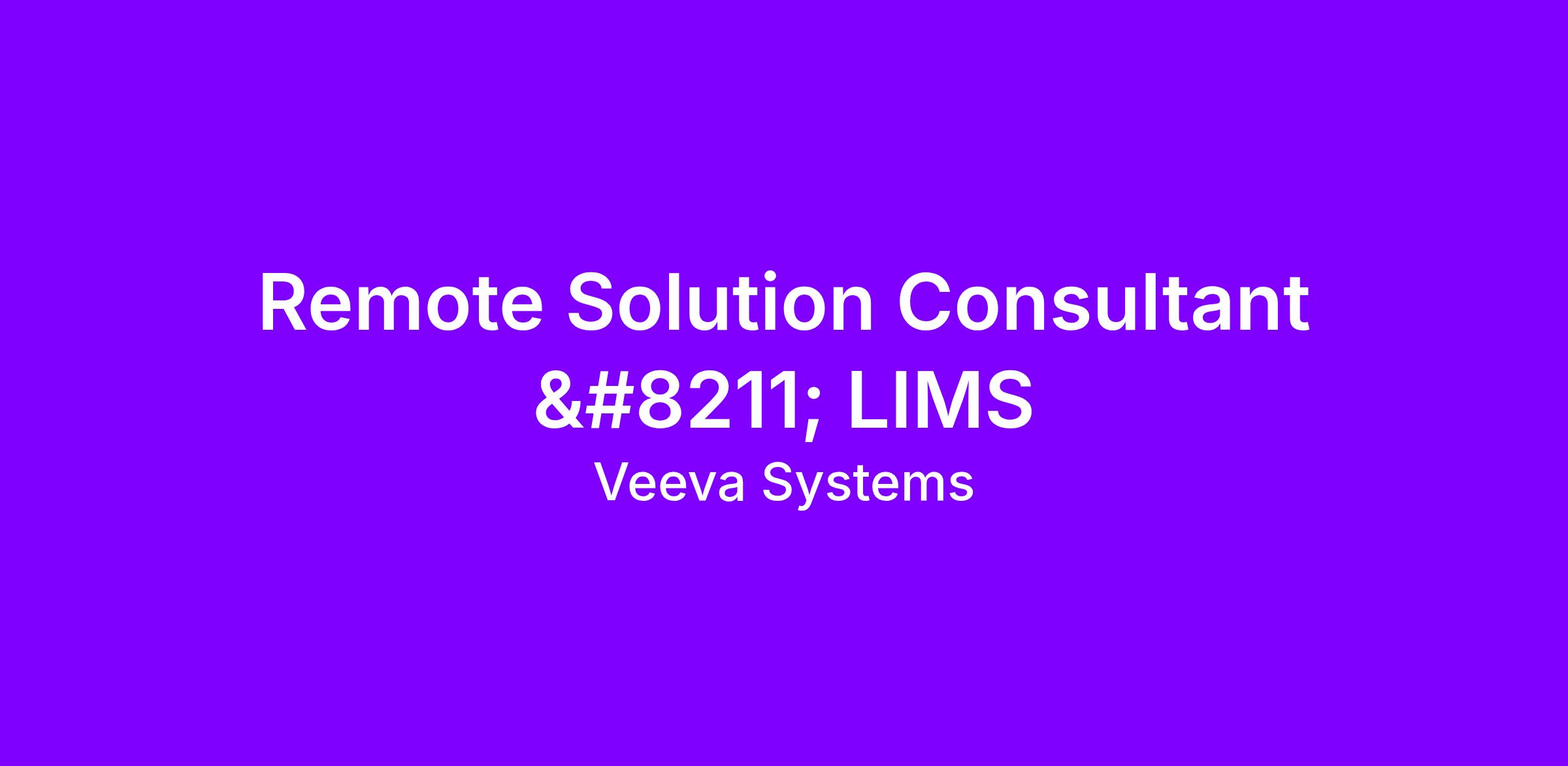 Do you seek out problem-solving at the intersection of business and technology within the QC Lab? Do you readily identify novel solutions for distracting technology issues? Do you desire to work at the forefront of LIMS and Quality Platforms within the Pharma industry? Veeva is building the first modern cloud LIMS system and is hiring Solution Consultants to confidently demonstrate the power and value to our customers.