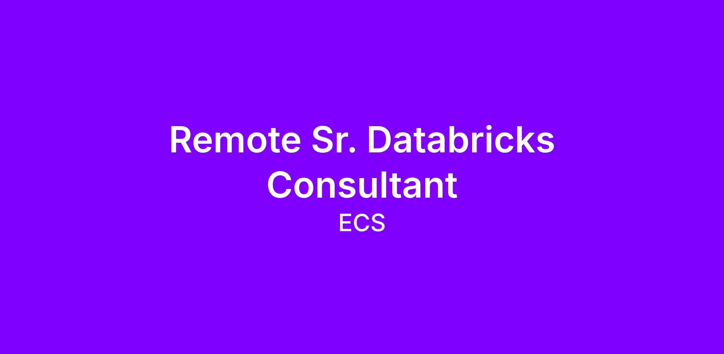 ECS is seeking a Sr. Databricks Consultant to work remotely. Please Note: This position is contingent upon additional funding.