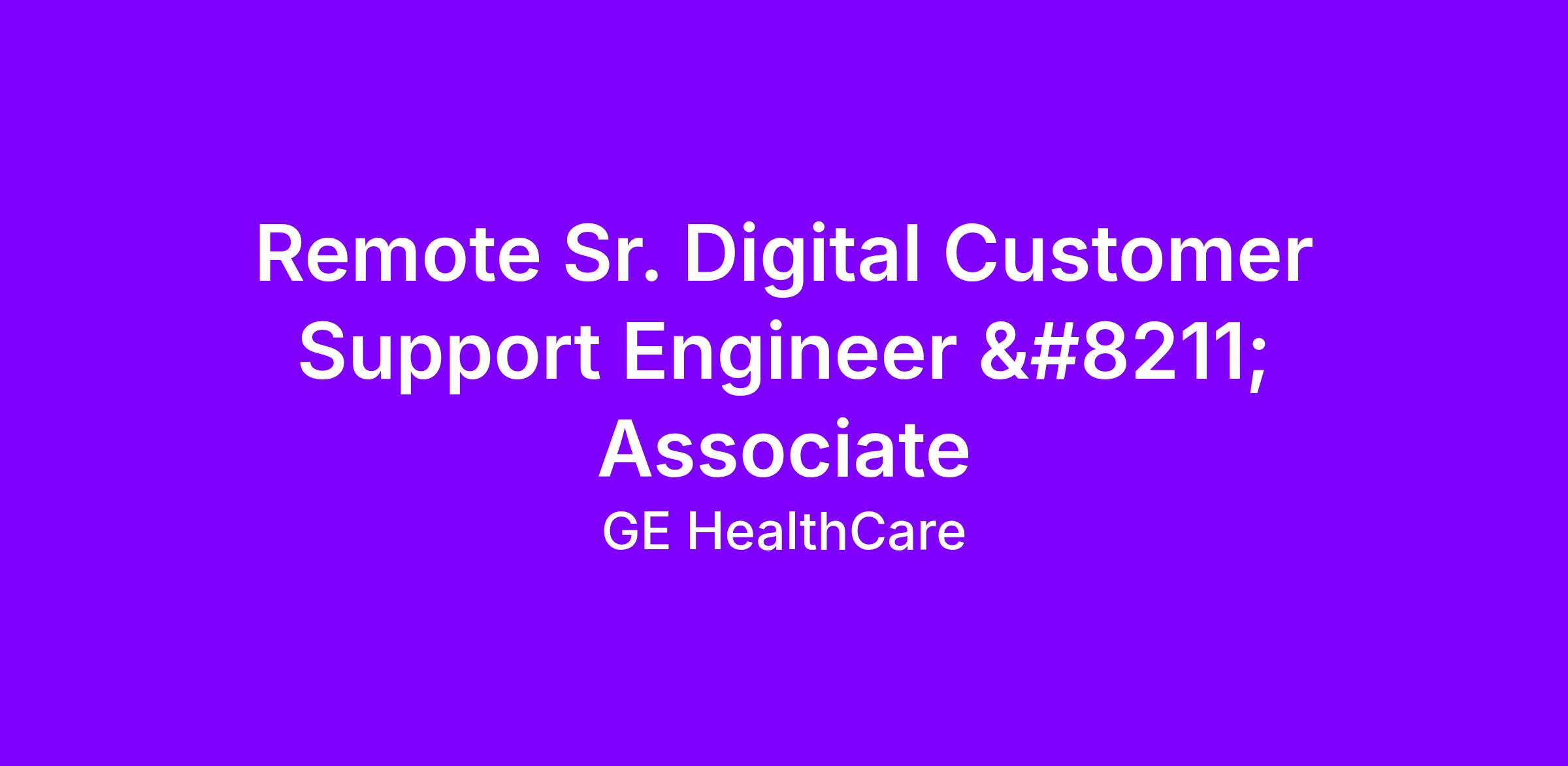 GE HealthCare is seeking a Senior Associate, Digital Service Operations where you will lead the technical aspects of installation and ongoing support of all products in the Imaging Digital Solutions (IDS) portfolio. You’re responsible for remotely deploying and support IDS offerings, engaging with Project Managers, onsite customers, GEHC Field support, and GEHC engineering to ensure a world class customer experience wing-to-wing.