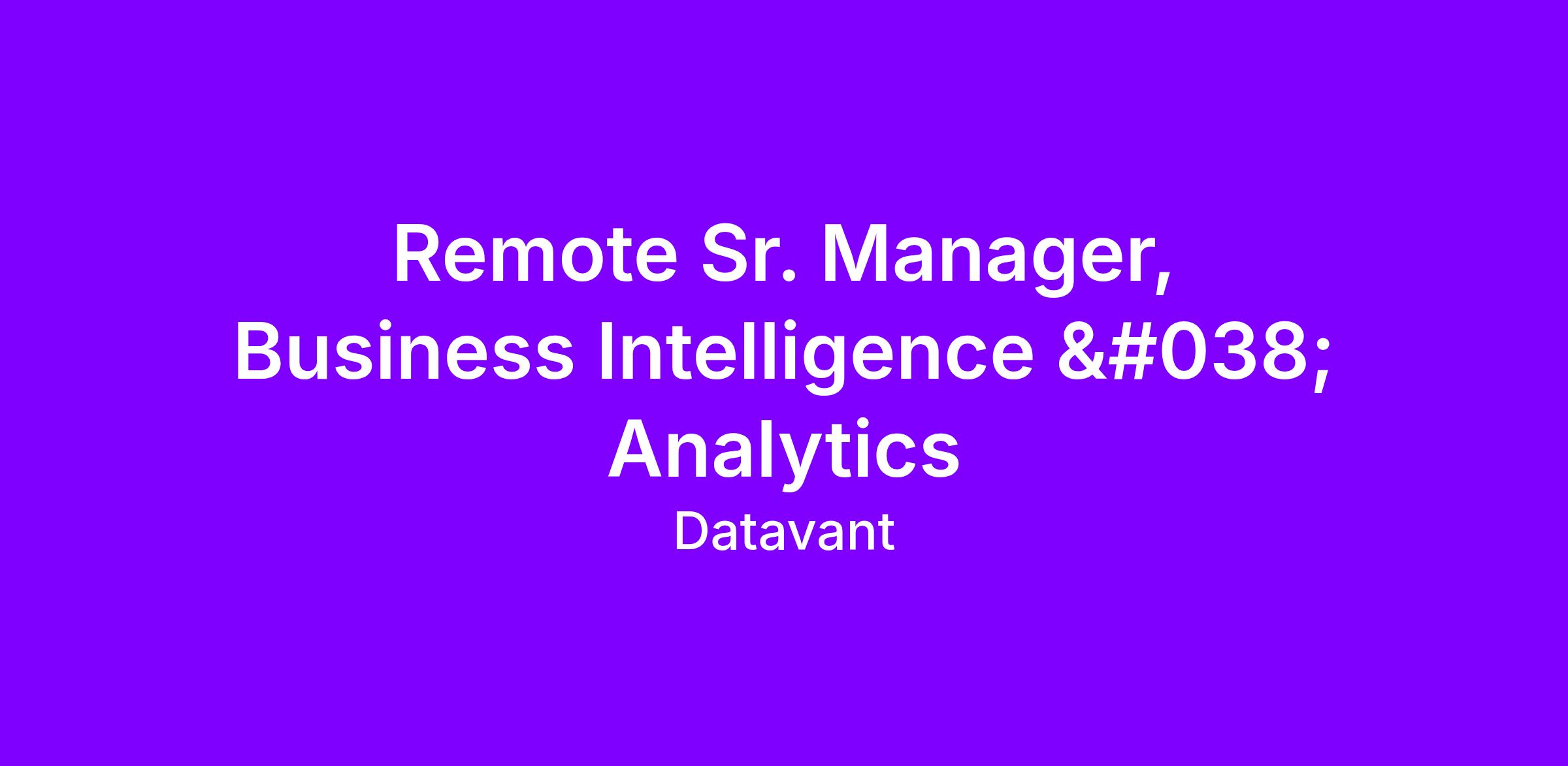We are committed to building a diverse team of Datavanters who are all responsible for stewarding a high-performance culture in which all Datavanters belong and thrive. We are proud to be an Equal Employment Opportunity employer and all qualified applicants will receive consideration for employment without regard to race, color, sex, sexual orientation, gender identity, religion, national origin, disability, veteran status, or other legally protected status.