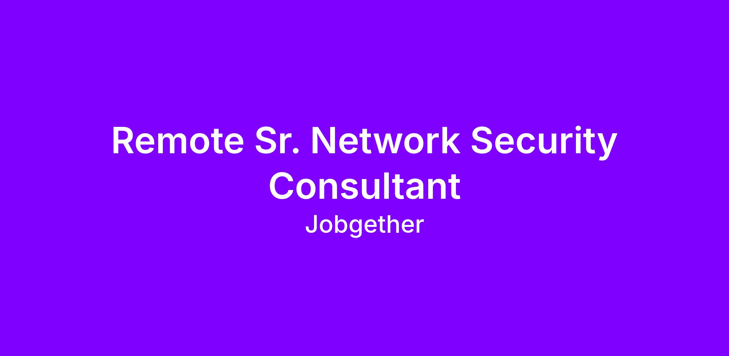 Remote Sr. Network Security Consultant