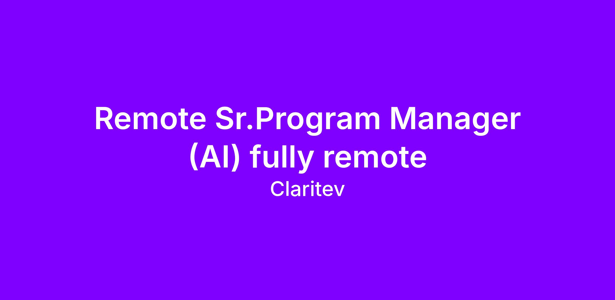At Claritev, we pride ourselves on being a dynamic team of innovative professionals. Our purpose is simple – we strive to bend the cost curve in healthcare for all. Our dedication to service excellence extends to all our stakeholders — internal and external – driving us to consistently exceed expectations. We are intentionally bold, we foster innovation, we nurture accountability, we champion diversity, and empower each other to illuminate our collective potential. Be part of our amazing transformational journey as we optimize the opportunity towards becoming a leading technology, data, and innovation voice in healthcare. Onward and Upward!!! JOB SUMMARY: The Sr. TPM – AI Program Manager is responsible for leading the planning, execution, and delivery of complex, cross-functional technology programs as part of the Data Science/AI team. This role requires a strategic thinker with strong technical acumen, excellent communication skills, and a proven ability to manage multiple initiatives simultaneously. This role will work closely with engineering, product, data, and business teams to ensure successful delivery of high-impact programs that align with organizational goals. The role is remote and based anywhere in United States.