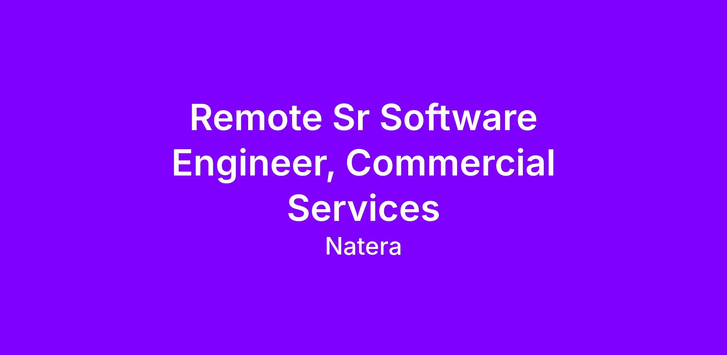 POSITION SUMMARY: Are you ready to make a real impact on people’s lives and be a part of a rapidly-growing team? Natera is seeking a Senior Software Engineer to help lead the design, development, and maintenance of our commercial services, a critical backend microservice that powers our business operations. As a senior member of our engineering team, you will play a key role in driving technical excellence in our order processing systems, mentoring other engineers, and helping to positively impact patient outcomes. Join us in our mission to change the way disease is managed, and be a part of a team of dedicated professionals who are passionate about making a difference.