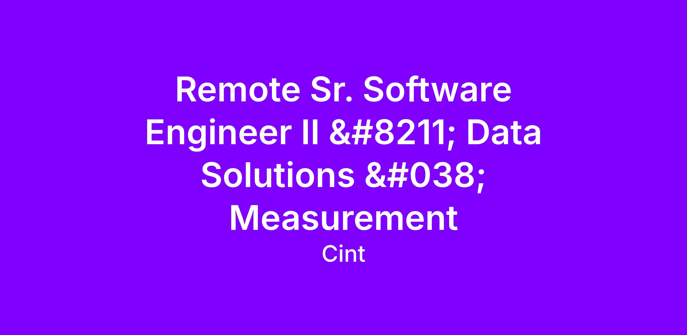 The Cint Technology team is looking for a Senior Software Engineer II to join our international Measurement team. This position is for a software engineer who likes challenges. Our business has been doubling in the last few years, and so our systems need to scale to accommodate this growth.