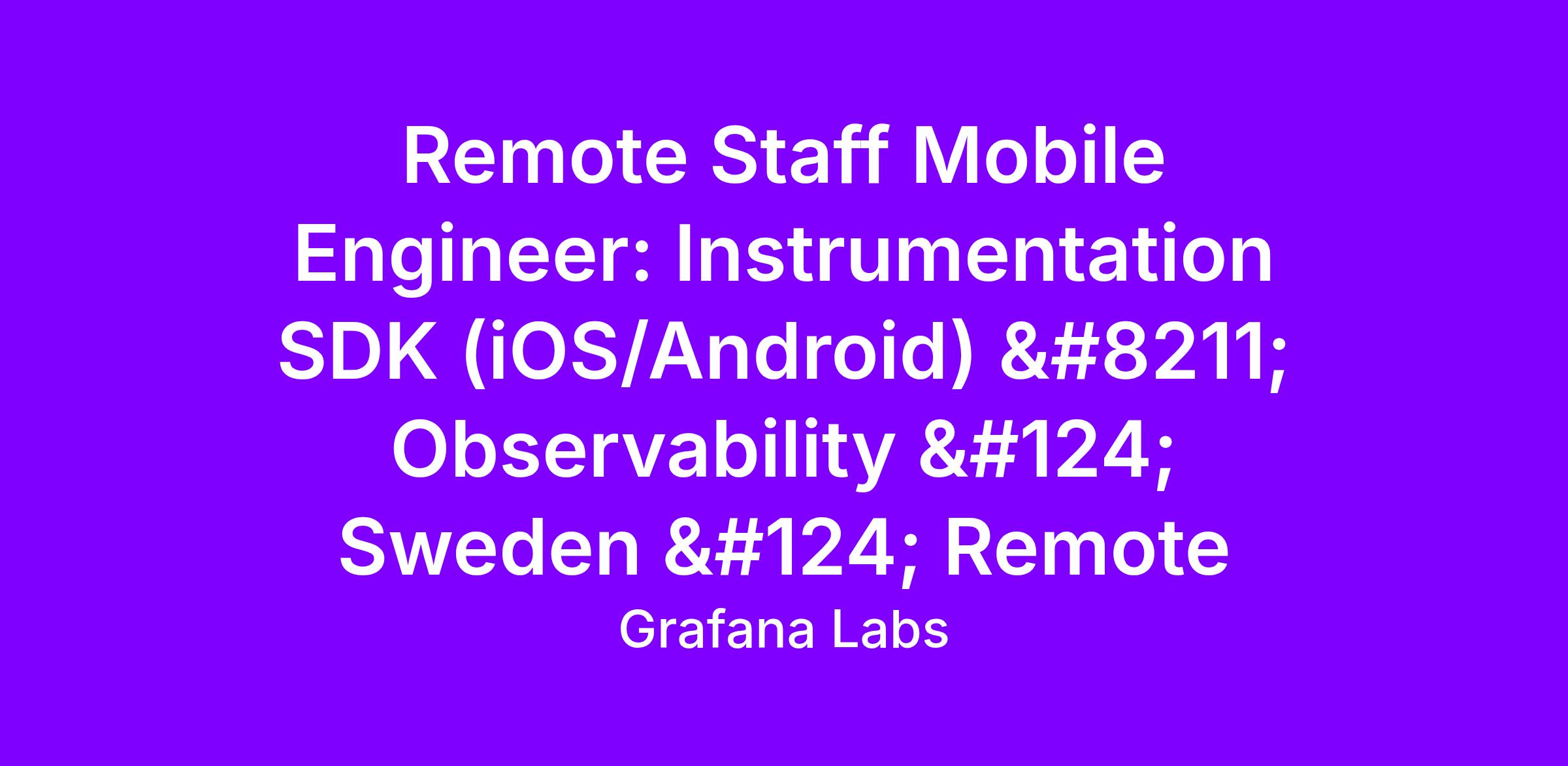 Grafana Observability builds end-to-end observability that spans application, infrastructure, database, browser, and mobile. Our Mobile Observability initiative gives mobile developers first-class instrumentation SDKs that capture traces, metrics, logs, crashes, and user sessions. Our solutions aim to be tightly integrated with OpenTelemetry and Grafana Cloud. We’re building high-performance, low-overhead SDKs that make it easy for teams to connect mobile signals to backend and infra telemetry for true full-stack visibility.
