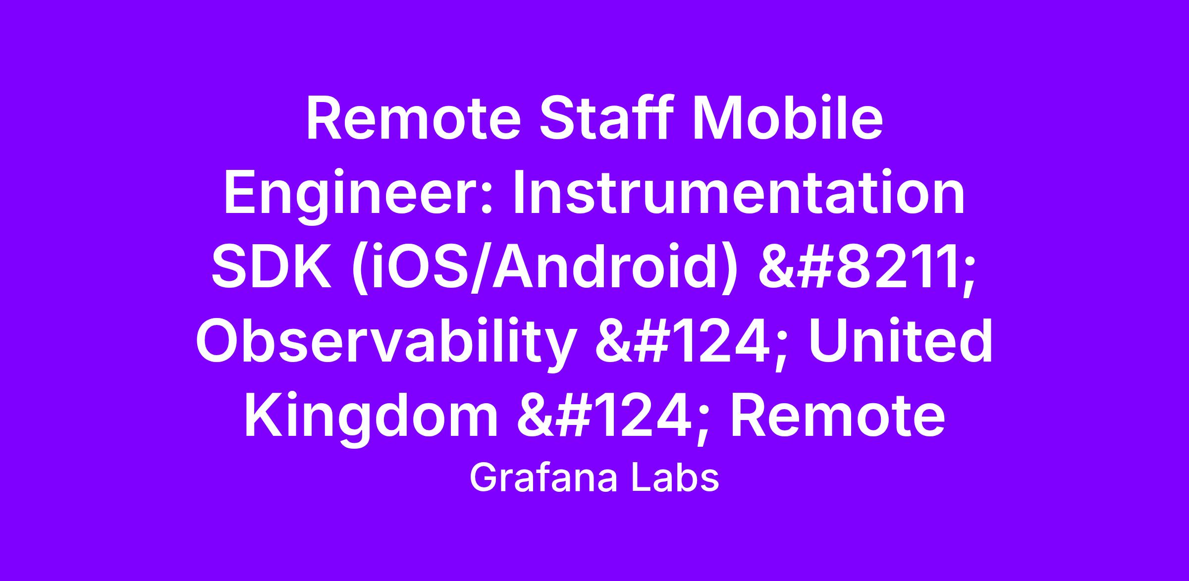 Grafana Observability builds end-to-end observability that spans application, infrastructure, database, browser, and mobile. Our Mobile Observability initiative gives mobile developers first-class instrumentation SDKs that capture traces, metrics, logs, crashes, and user sessions. Our solutions aim to be tightly integrated with OpenTelemetry and Grafana Cloud. We’re building high-performance, low-overhead SDKs that make it easy for teams to connect mobile signals to backend and infra telemetry for true full-stack visibility.