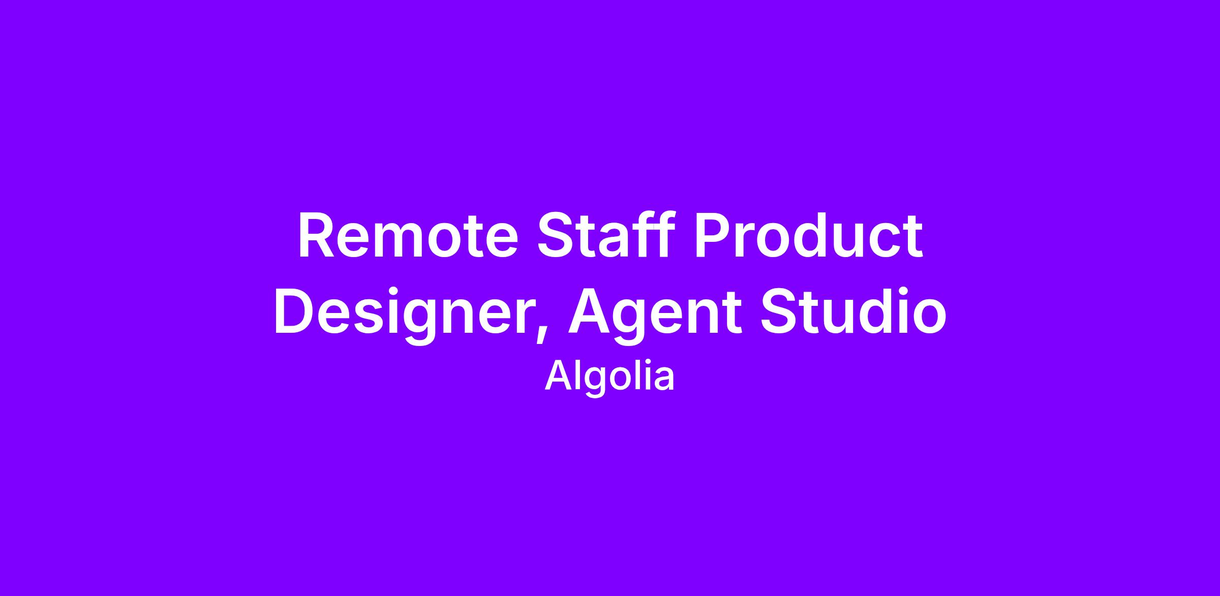Agent Studio is Algolia’s AI builder platform, enabling customers to design, configure, and deploy intelligent agents that power rich, real-time experiences across their products. We are moving from early 0→1 foundations into the next phase of evolution. The product is currently in beta, and this role will play a critical part in shaping how it scales technically, conceptually, and experientially. We’re looking for a Staff Product Designer to help define the future of Agent Studio. You’ll work across dashboard configuration experiences, AI behavior design, and the downstream frontend experiences those configurations power. This role blends deep product thinking, strong interaction design craft, and meaningful technical fluency. You’ll collaborate closely with Product Managers and Engineers across Agent Studio, Model Context Protocol, and Frontend Experience teams to bring clarity to complex systems and design AI-powered workflows that are powerful, intuitive, and trustworthy. You’ll focus on designing systems (not just screens), helping Algolia customers build AI agents with confidence, while ensuring those agents deliver high-quality experiences to end users.