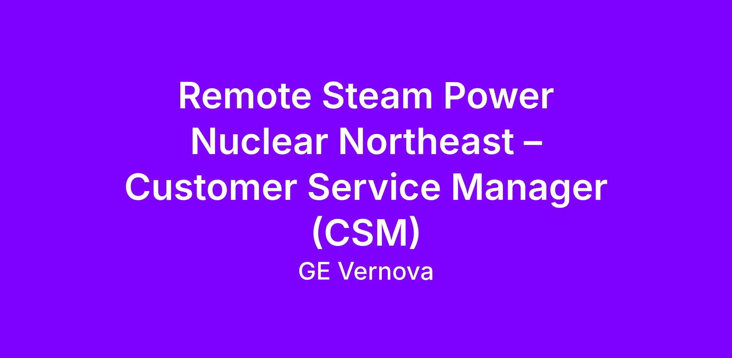 As a Customer Service Manager (CSM) in the GE Steam Power Americas Nuclear North Region, this role is a critical P&L (Profit & Loss) owner directly engaging with internal and external customers and delivering safe, quality, on time, profitable outage execution on both GE’s nuclear installed base of steam turbines, generators, and balance-of-plant components as well as on Other OEM (Original Equipment Manufacturer) equipment. This demanding role will require you to function effectively in a broad and matrixed environment.
