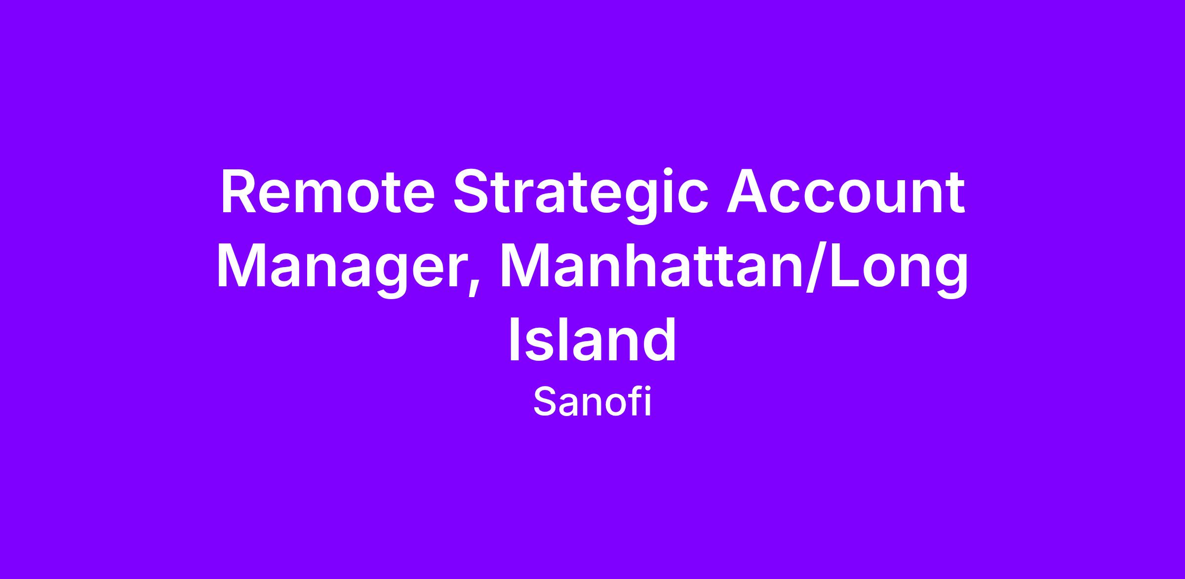 Job title: Strategic Account Manager, Manhattan/Long Island