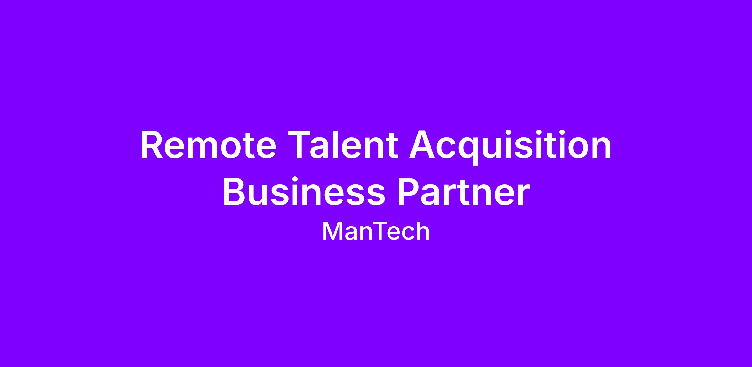 MANTECH seeks a motivated, career and customer-oriented Talent Acquisition Business Partner to join our team. This is a remote position.