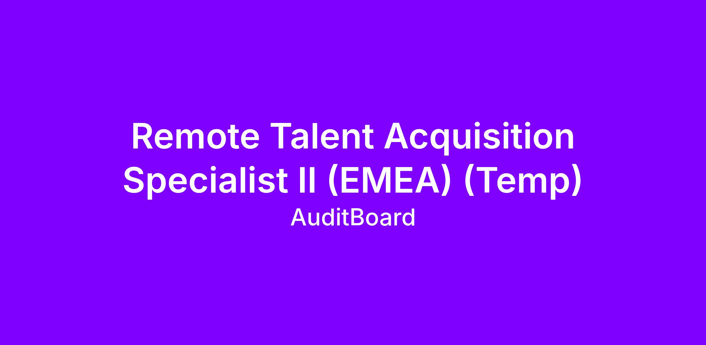 We are seeking a temporary Talent Acquisition Specialist II to support our hyper growth efforts for recruitment on roles across EMEA, with an emphasis on Sales (GoToMarket).