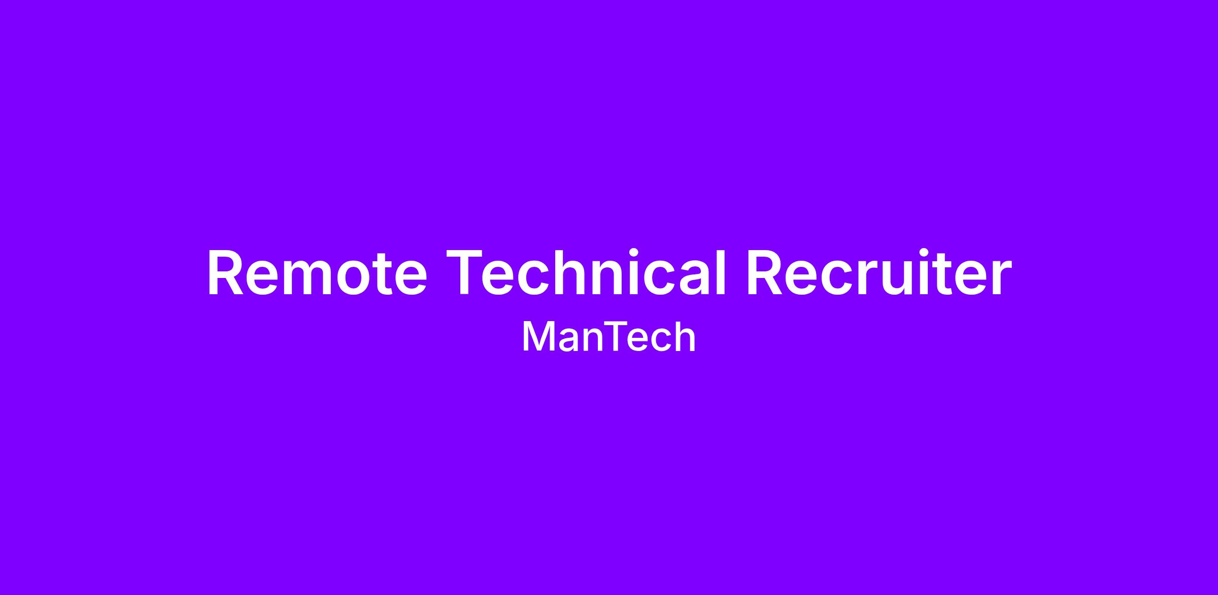 MANTECH seeks a motivated, career and customer-oriented Technical Recruiter to join our team in a remote capacity. You will leverage your extensive recruiting expertise and leadership skills to support the Navy Segment’s talent acquisition efforts, ensuring the mission is staffed with top-tier technical professionals across a variety of complex programs. This is a remote position.