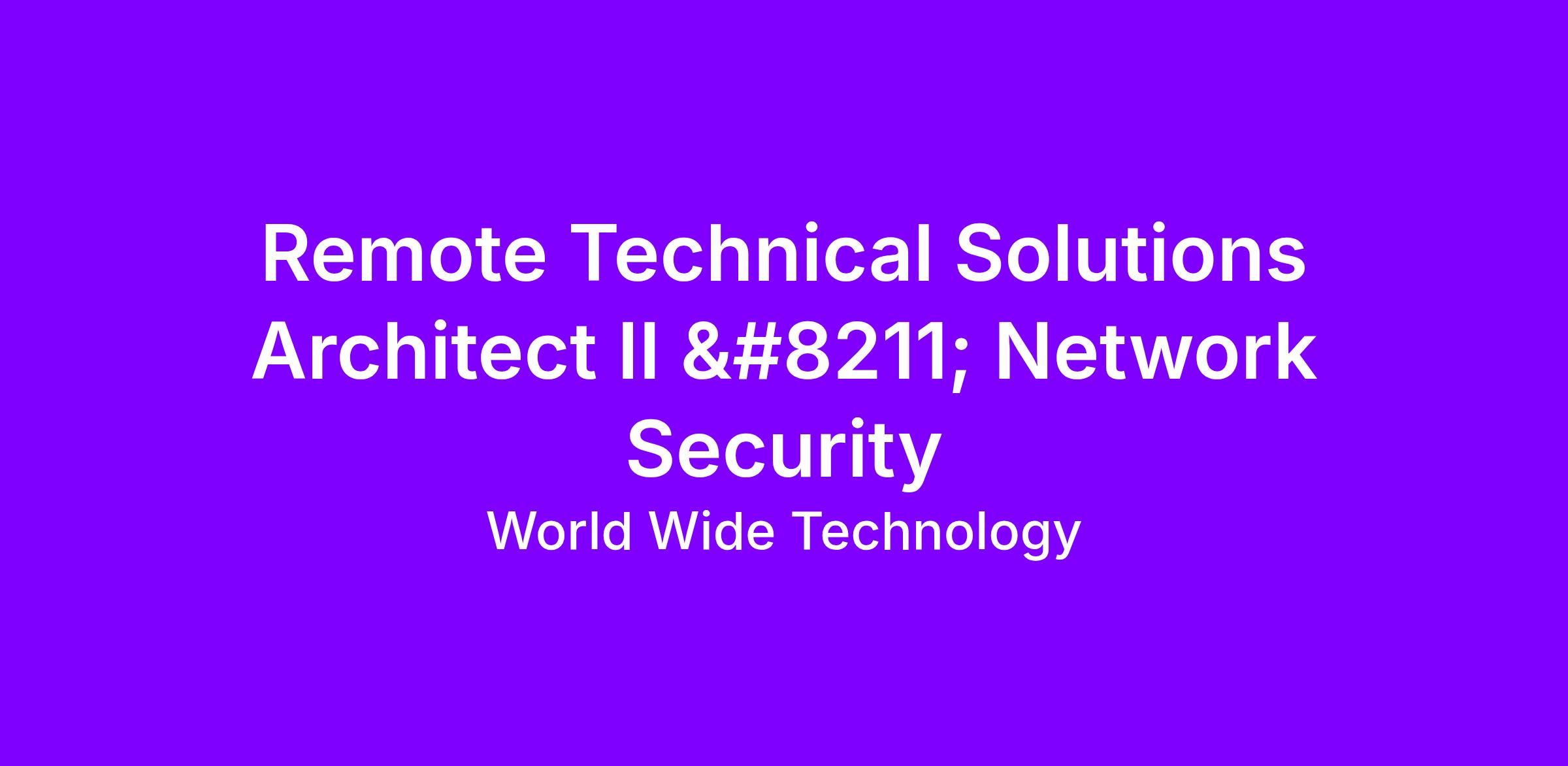 This role resides within the Advanced Technology Center (ATC) Solutions Development Security team. The Technical Solutions Architect II – Network Security serves as an architectural authority for modern cybersecurity solutions, responsible for evaluating, designing, and guiding security architectures that support WWT’s integrated lab environments, learning content, and customer engagements.