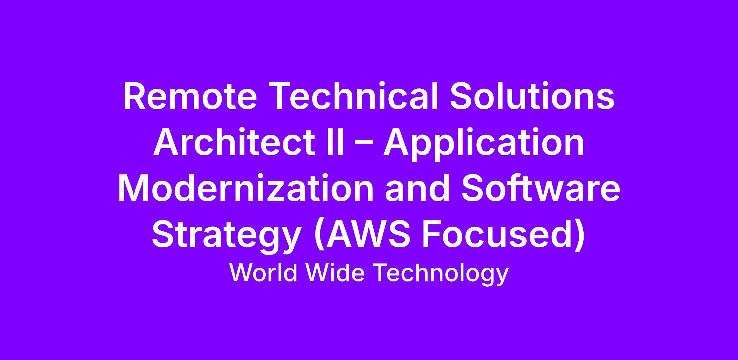 Our Cloud Team is currently looking for a Technical Solutions Architect with an AWS focus who is passionate about Cloud Migration and Application Modernization.
