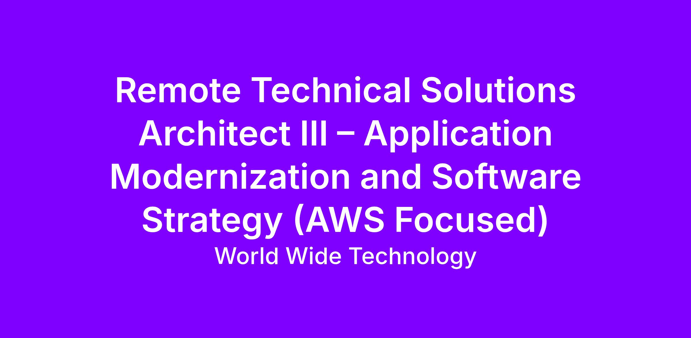 Our Cloud Team is currently looking for a Technical Solutions Architect with an AWS focus who is passionate about Cloud Migration and Application Modernization.