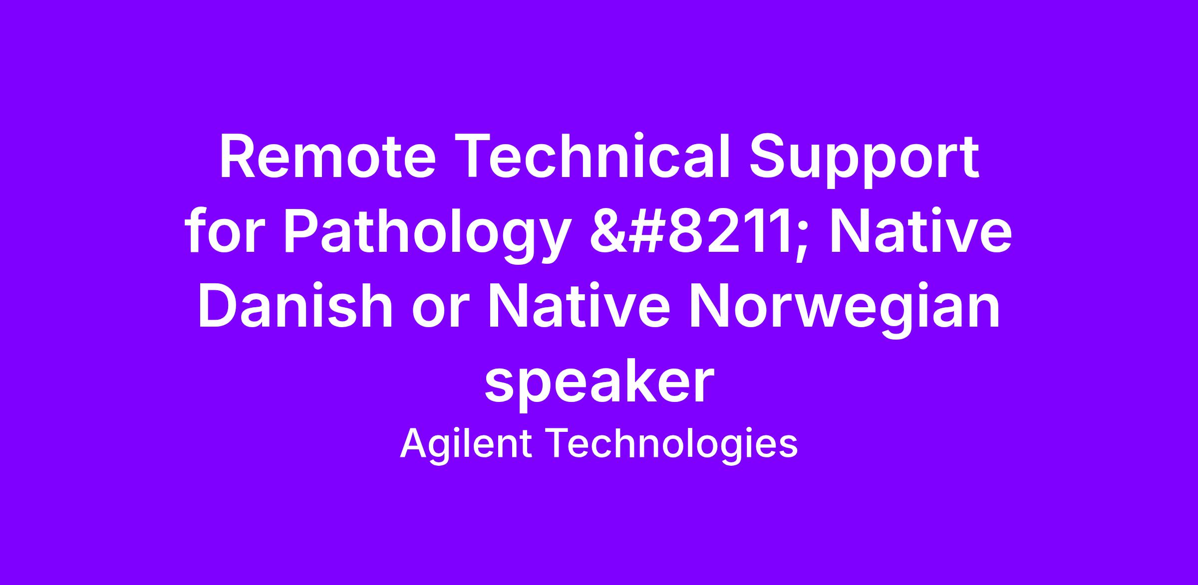 Are you passionate about technology and helping others? Join our team in Agilent Diagnostic Service as a Remote Technical Support Specialist for Pathology!