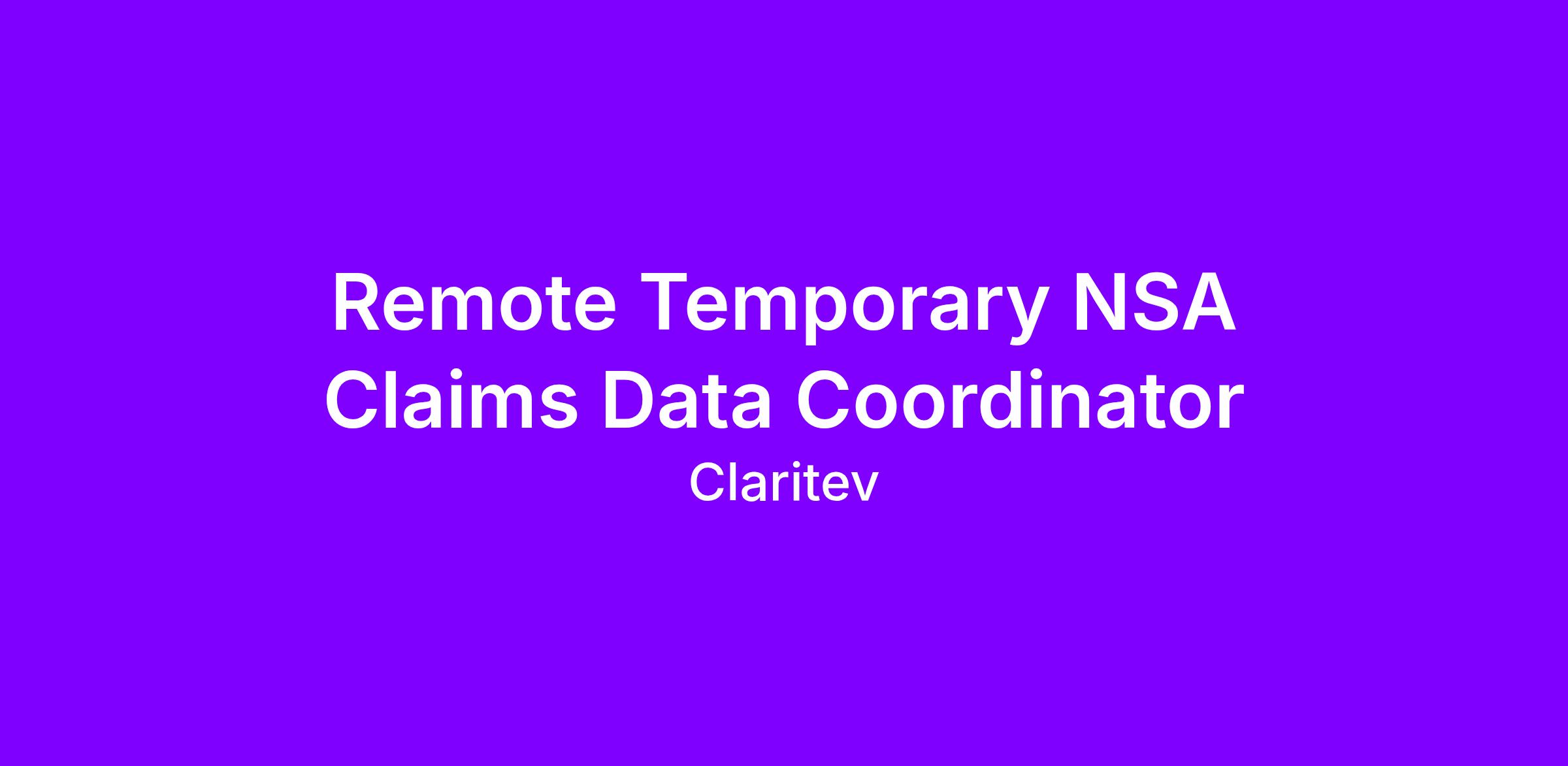 Temporary NSA Claims Data Coordinator