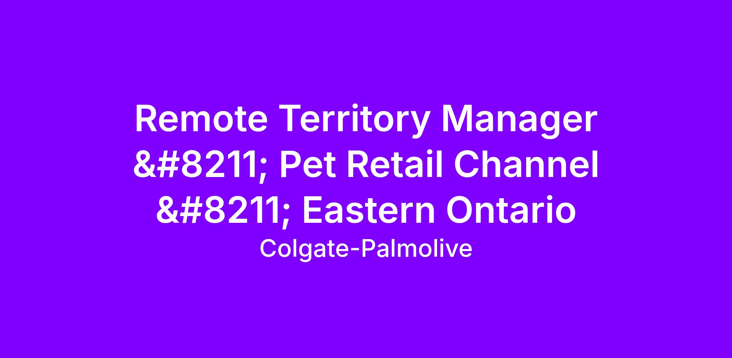 *This territory includes cities in Eastern Ontario. The ideal candidate must live near Ottawa.