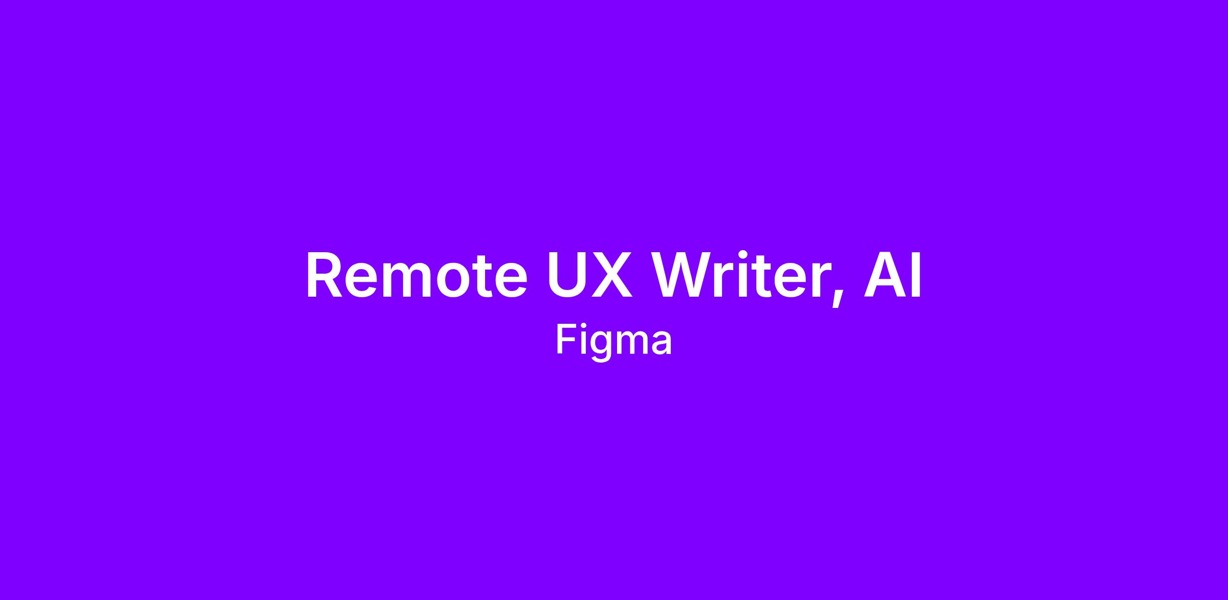 We’re looking to grow Figma’s UX Writing team. While the title of this role is “UX Writer,” you might think of yourself as a content engineer as much as a writer—someone who uses language to shape how people interact with AI, from crafting better inputs to defining clear, consistent outputs. You’ll collaborate deeply in our most forward-looking areas, helping designers move from idea to product, faster and better.