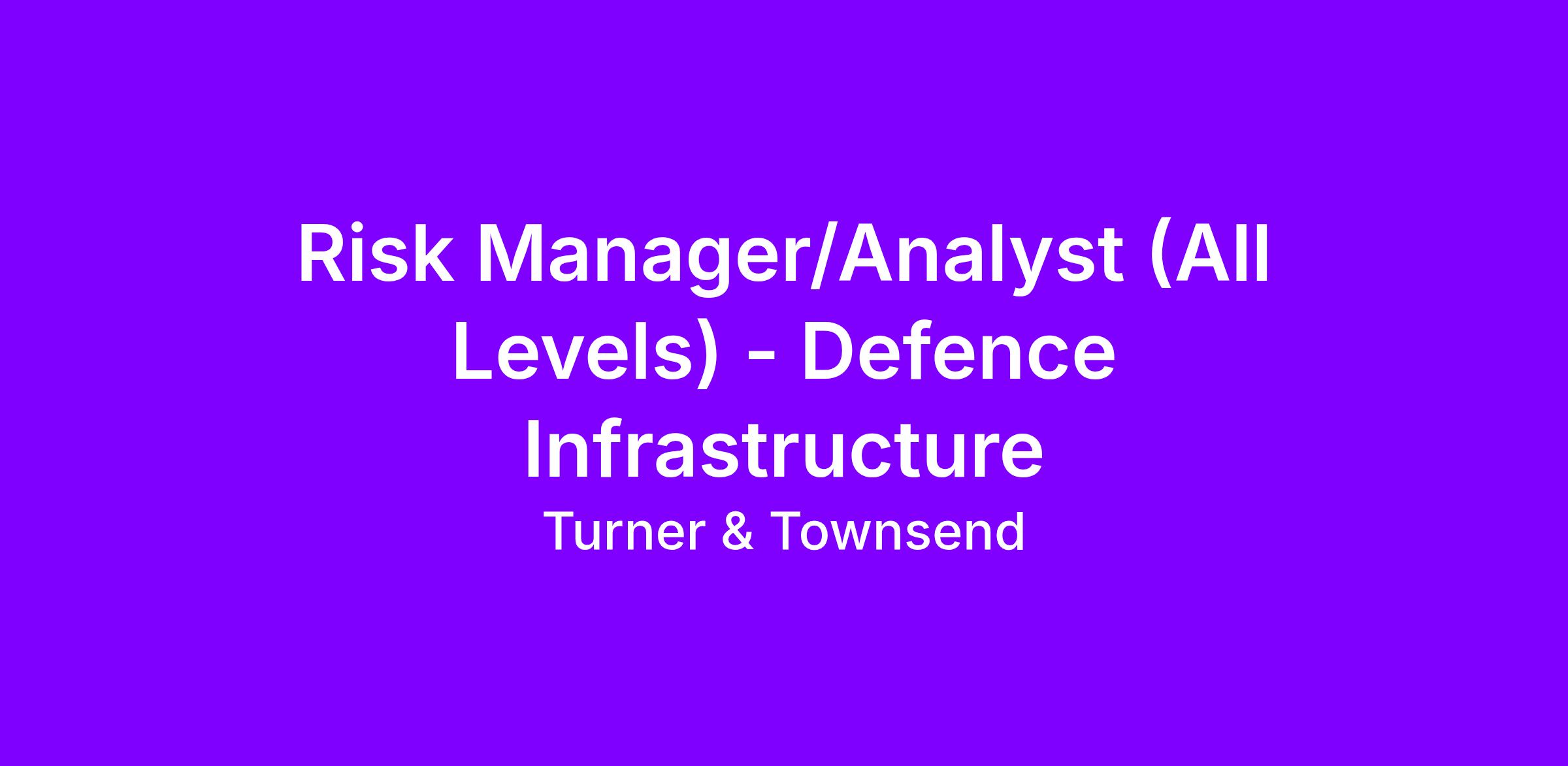 Risk Manager/Analyst (All Levels) - Defence Infrastructure