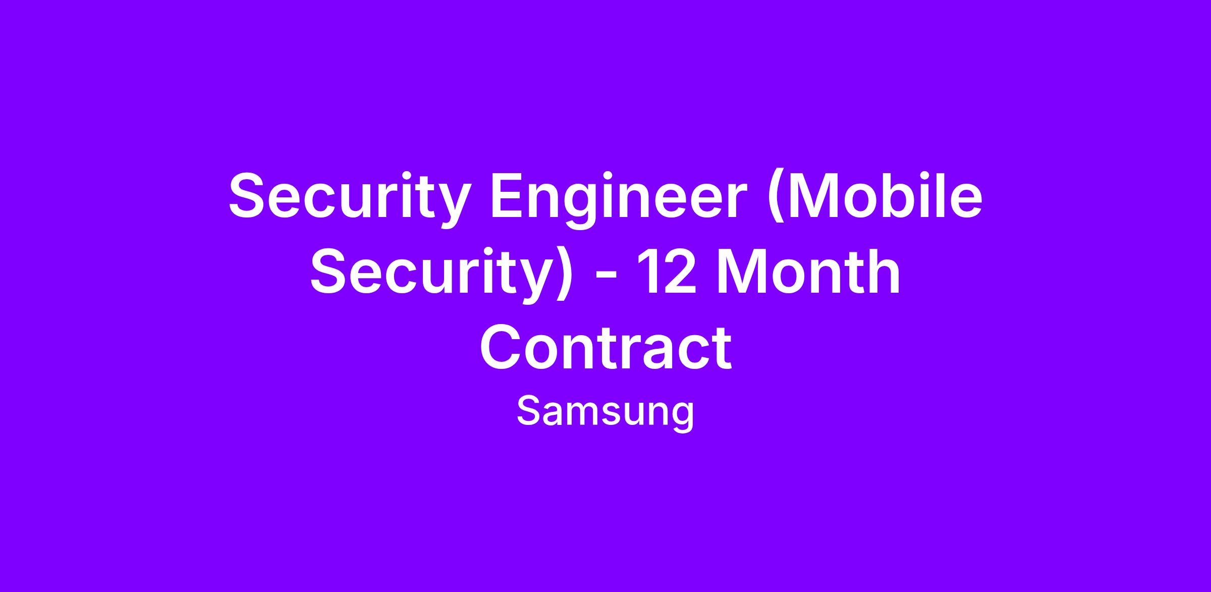 We have an opportunity available for Security Engineer to join us on a 12 month contract basis here at Samsung Research UK.Role and Responsibilities