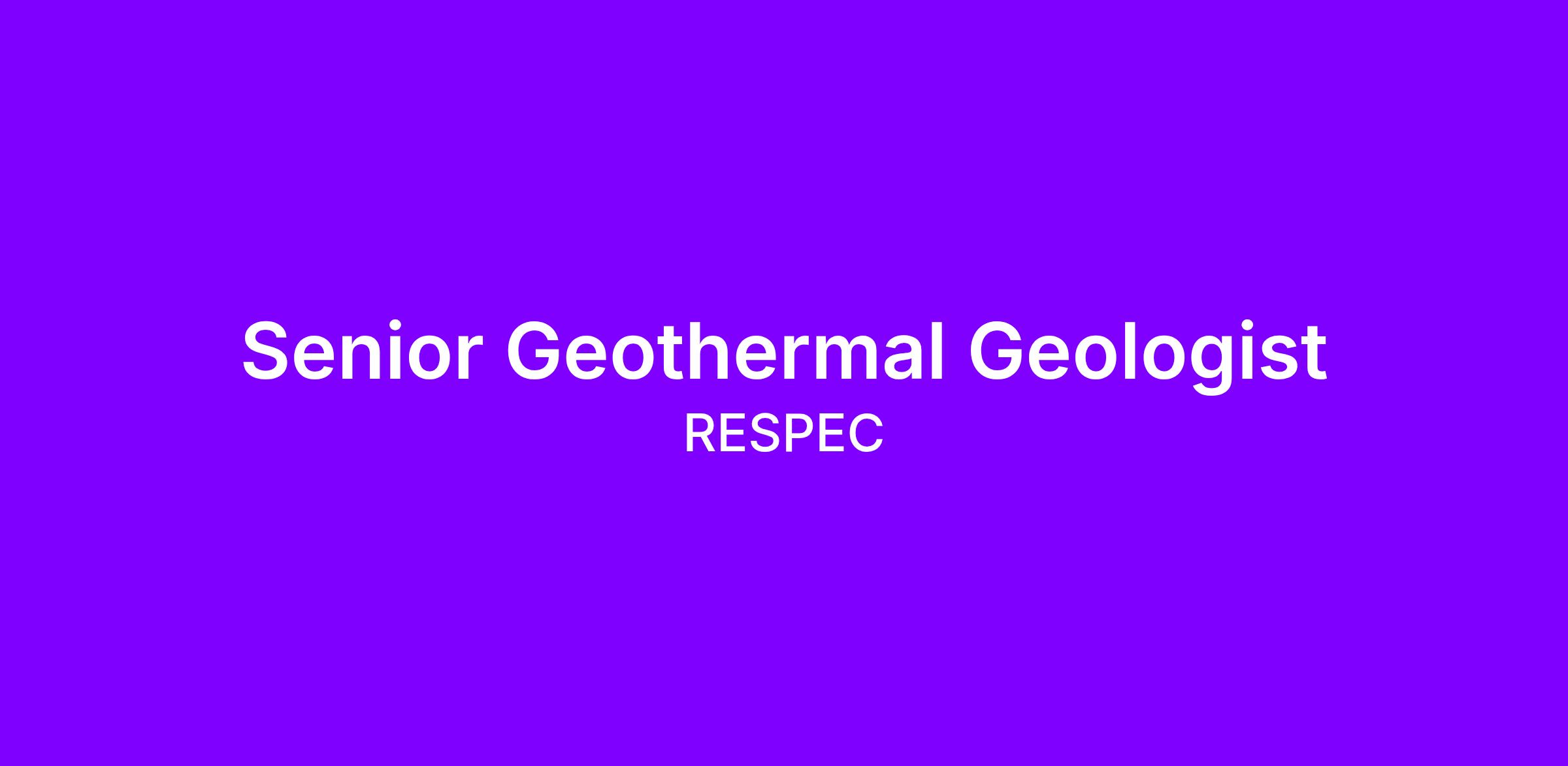 RESPEC seeks a Senior Geothermal Geologist to join our Mining & Energy Team.