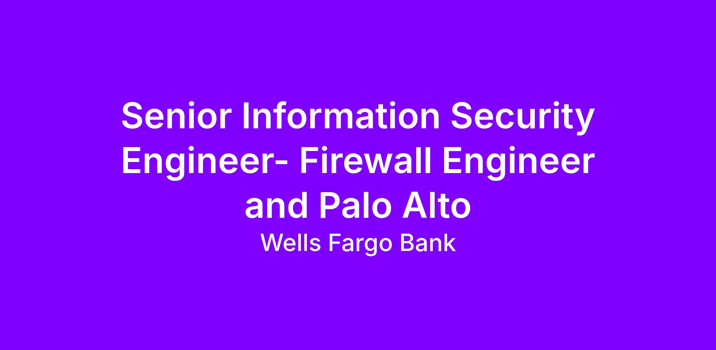 Wells Fargo is seeking a Senior Information Security Engineer.