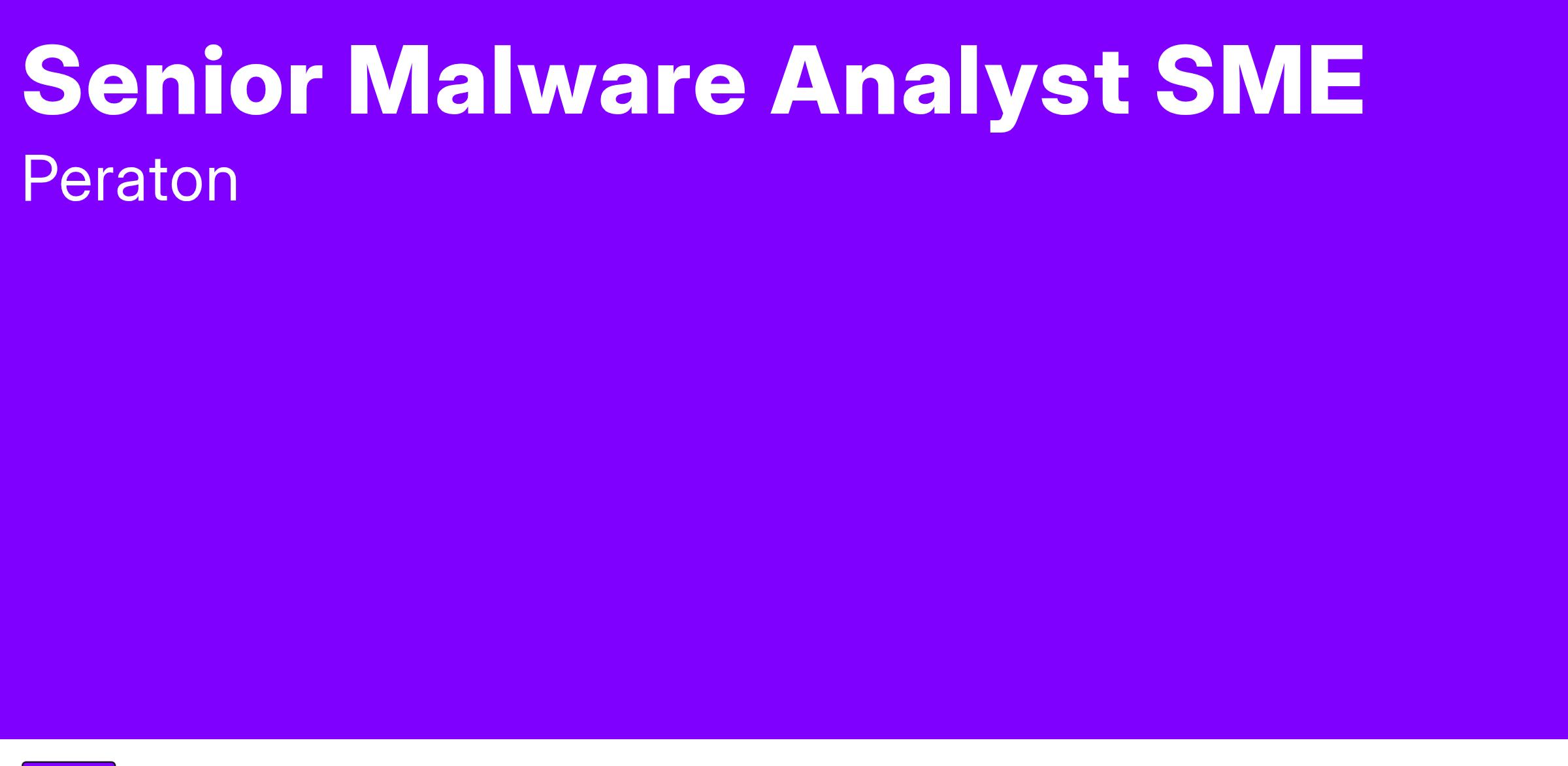 Peraton is seeking a to hire an experienced Malware Senior Engineer, Subject Matter Expert to become part of Peraton’s Department of State (DoS) Diplomatic Security Cyber Mission (DSCM) program to provide leading cyber and technology security experience to enable innovative, effective and secure business processes.