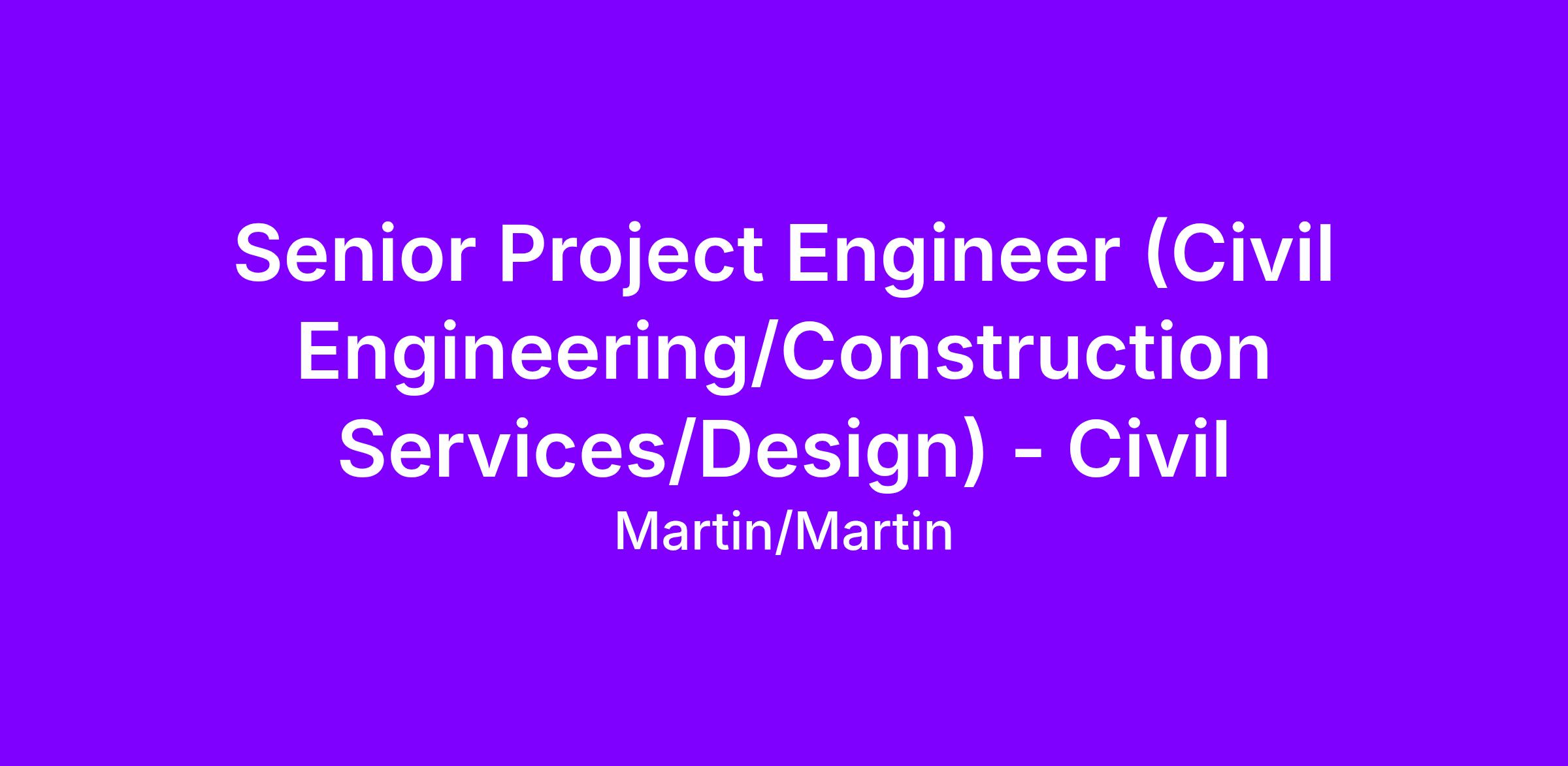Martin/Martin is looking for an experienced civil senior project engineer to join our Denver, Colorado office. The position will provide opportunities for civil design throughout the Front Range of Colorado as well as nationally. A successful candidate will be a motivated self-starter with strong technical, project management, and client communication skills.