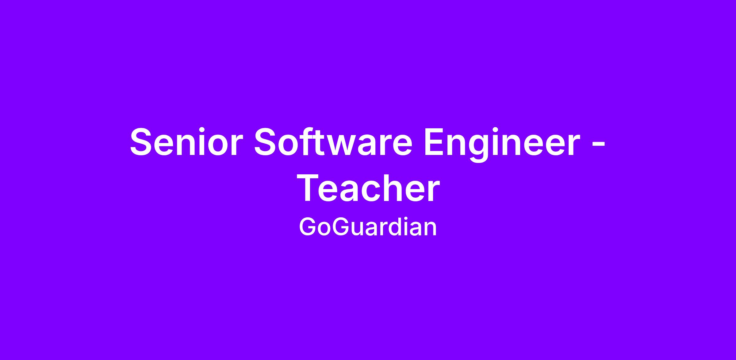 We’re looking for a Senior Software Engineer, Fullstack to design and implement solid architectural solutions with the rest of the engineering team, supporting our Teacher product. With your passion for quickly solving problems and ability to implement high-quality code while continuously collaborating with other amazing team members, you will be making our teachers’ lives easier while helping them engage every student every day. Our Engineering team is built on a purpose-driven culture of collaboration, openness, trust, and transparency with amazing individuals that push the limits and think outside the box every day. As the foundation of our company, GoGuardian engineers help build, optimize, and maintain our infrastructure and applications that support millions of students and educators every day. They develop solutions to support meaningful interactions between students and teachers in face-to-face, remote, or hybrid learning environments.